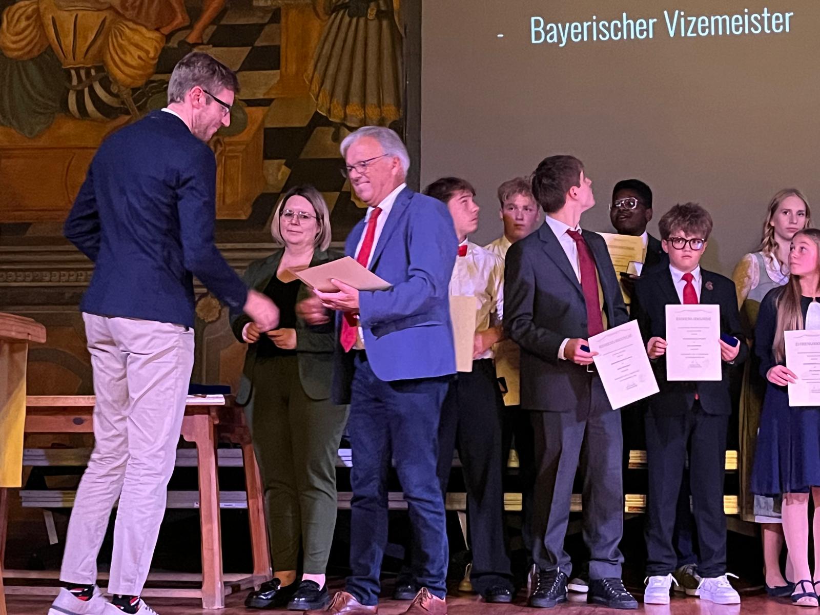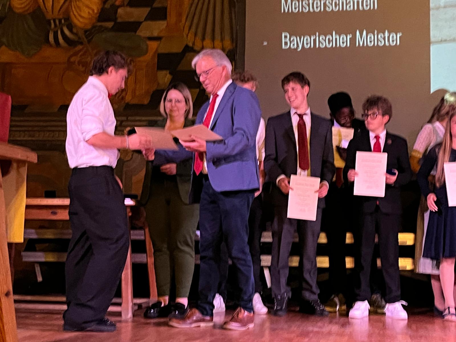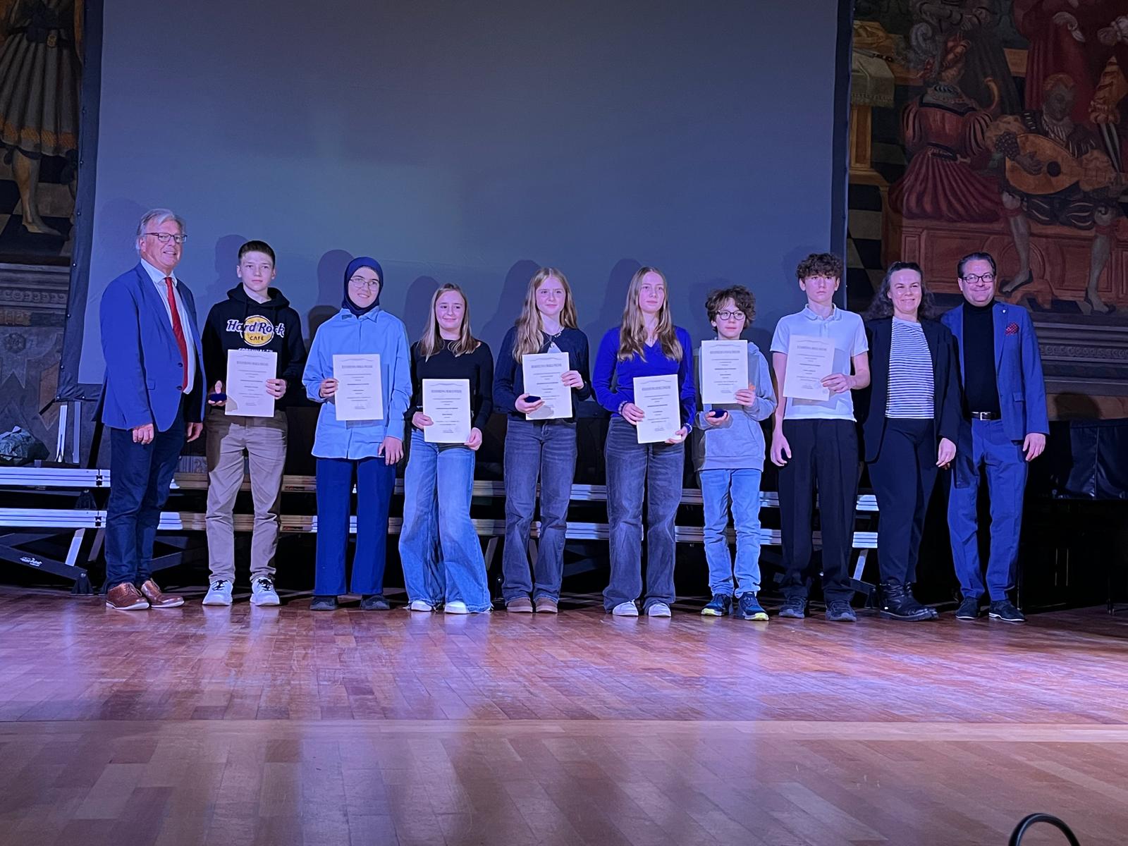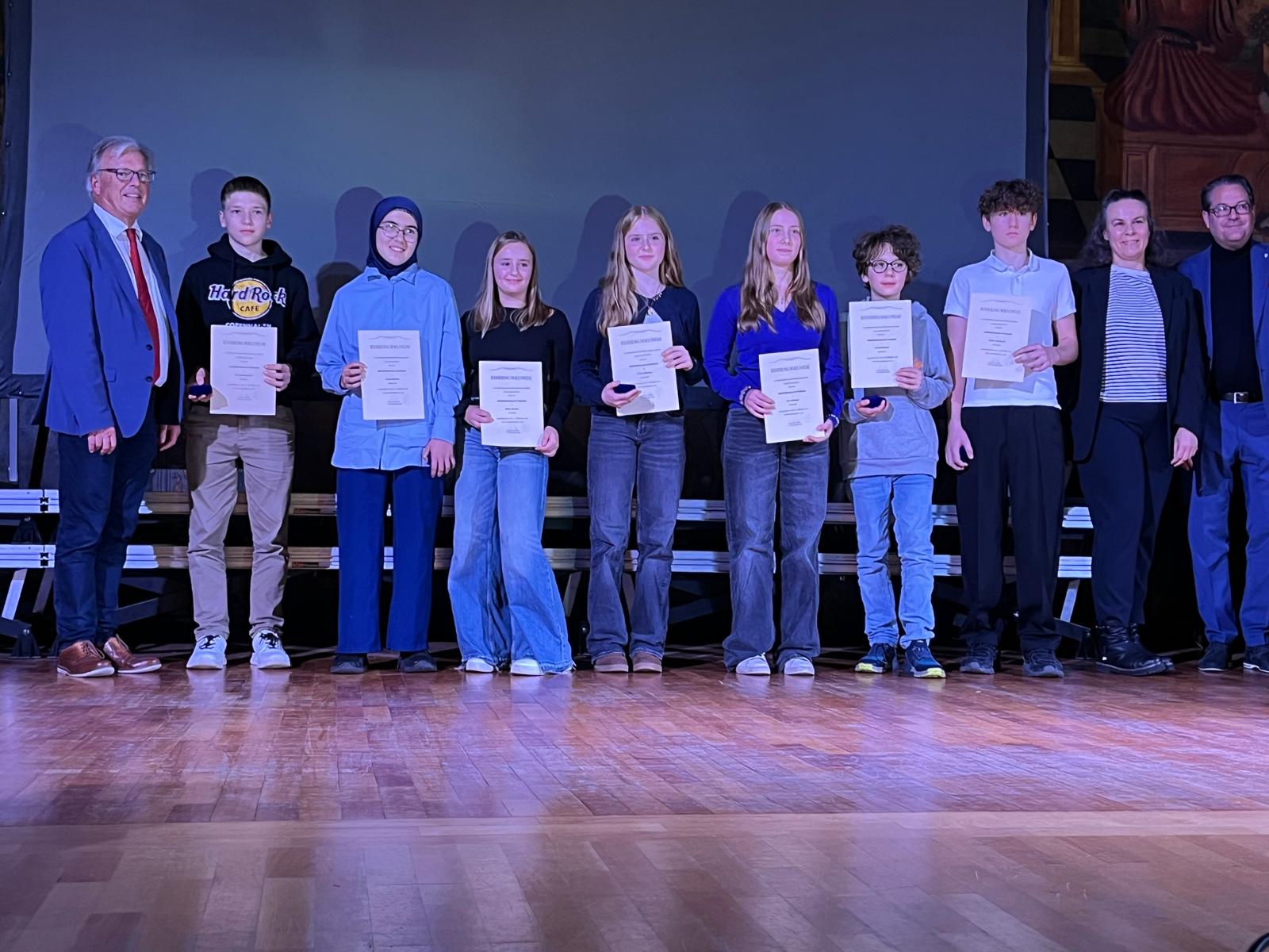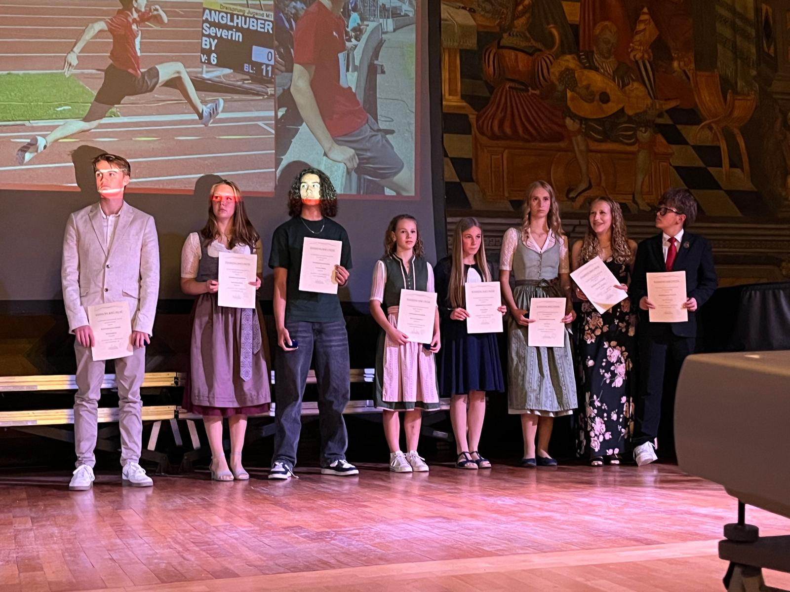 Jan Hacker, Simon Schober, Elias Schober, Simon Purainer, Lisa und Paula Döllinger, Thomas Watzl, Amina Quarbal, und Matthias Schmitz konnten für ihre erfolgreiche Turnierteilnahme die Bronzemedaille entgegennehmen.