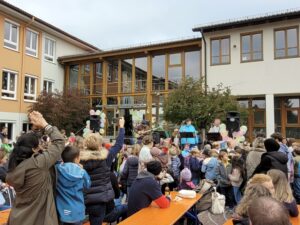War das ursprünglich vor den Sommerferien angesetzte Fest des Schulfördervereins noch wegen Dauerregen ins Wasser gefallen, lockte die jetzt im Herbst nachgeholte Ausgabe zahlreiche Gäste auf das Festgelände am Pausenhof. Die Lehrerband „Hörsturz“ sorgte für die musikalische Begleitung und beste Stimmung. Zahlreiche Mitmachstationen, wie das Steuern eines echten Minibaggers, die Wasserspritzwand der Jugendfeuerwehr, Handarbeiten mit Holz, ein Laser-Biathlonstand und lustige Geschicklichkeitsspiele ließen keine Langeweile aufkommen. Und auch für das leibliche Wohl war für jeden Geschmack umfassend gesorgt.