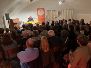Kürzlich gab es im Wasserburger Gimplkeller eine ganz besondere Lesung mit dem renommierten Spiegel-Bestseller-Autor Andreas Föhr, der sein neuestes Buch „Bodenfrost“ vorstellte. Die Lesung, organisiert von der Buchhandlung Fabula, war bis auf den letzten Platz ausverkauft und zog ein begeistertes Publikum an, das sich auf einen spannenden und kurzweiligen Abend mit dem beliebten Krimiautor freute.