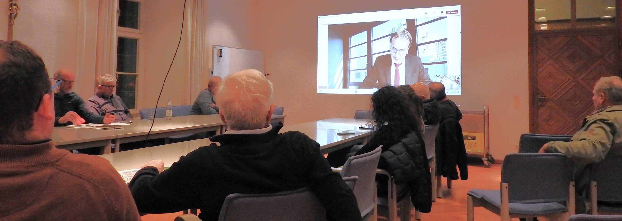 Obwohl der Verwaltungsgerichtshof der Gemeinde Rott recht gegeben hatte und die aufschiebende Wirkung der gemeindlichen Klage angeordnet hatte vor über einem Monat (wir berichteten), seien aktuell trotzdem weiterhin 70 Personen in der Gewerbehalle untergebracht. „Ohne Baugenehmigung und somit rechtswidrig“, hieß es gestern Abend auch vom Rotter Rechtsanwalt Jürgen Greß (Foto), der per Videokonferenz auf Großleinwand live zugeschaltet war.