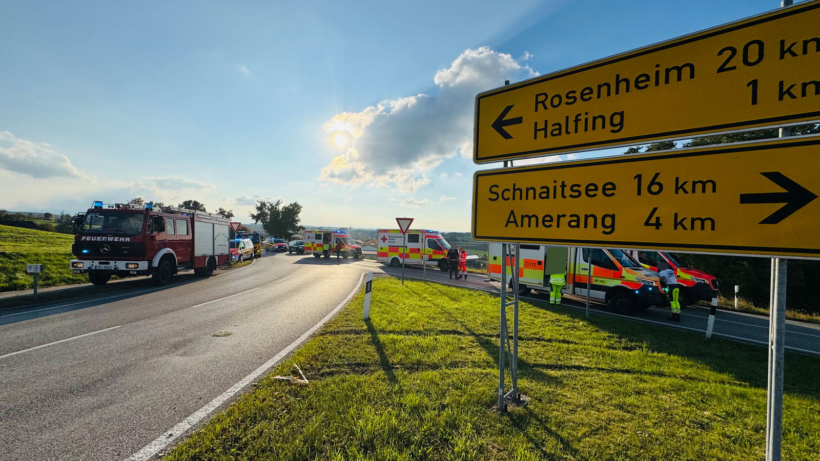 Donnerstagnachmittag, 16 Uhr: Alarm für die Feuerwehren Amerang und Halfing. Die Floriansjünger rücken auf die Kreisstraße RO4 zwischen den beiden Orten aus. An der Kreuzung Richtung Höslwang hat sich ein schwerer Unfall ereignet. Zwei Fahrzeuge sind zusammengeprallt. Ersten Meldungen nach hat ein Pkw-Fahrer beim Abbiegen ein anderes Auto übersehen. Es gab insgesamt fünf Verletzte. Der Rettungsdienst ist mit vier Fahrzeugen im Einsatz. Zwei Notärzte, Polizei und Kreisbrandmeister Michael Mayer aus Amerang sind vor Ort. Polizeibericht folgt …