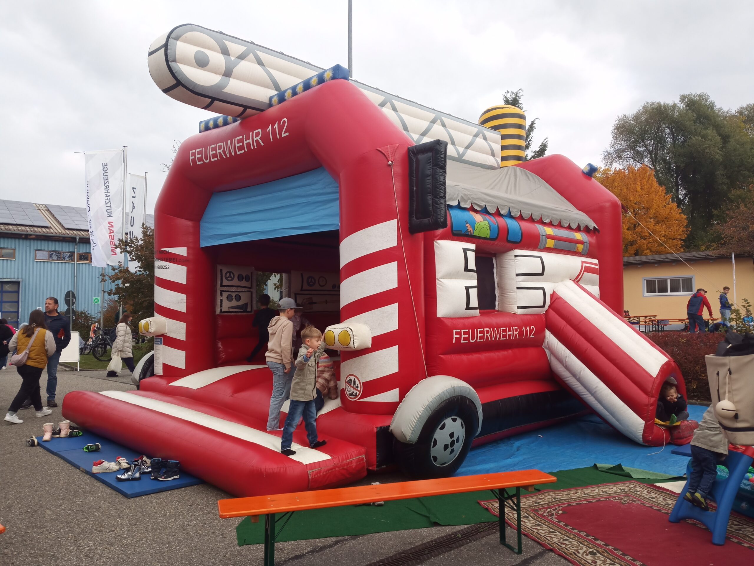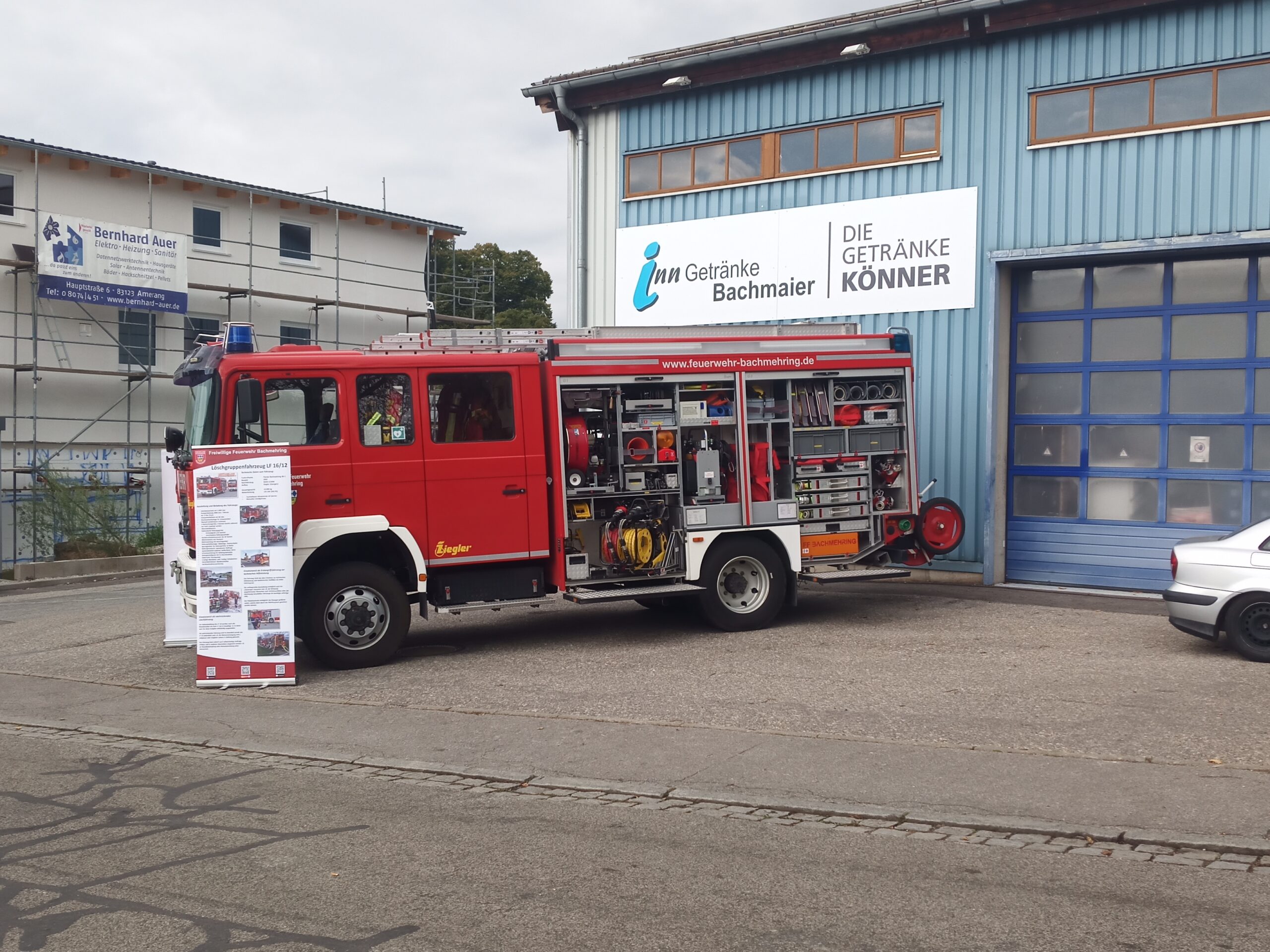 Die Feuerwehr Bachmehring simulierte ein Unfallszenario, bei dem eine „Person“ mit schwerem hydraulischem Gerät aus dem verunfallten Fahrzeug befreit werden musste. Außerdem stellten sie zwei ihrer Fahrzeuge aus und beantworteten die Fragen der Besucher zur technischen Ausstattung.