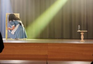 Dennoch können auch im geträumten Unsinn interessante Erkenntnisse liegen: Alice wird verwandelt. Mal ist sie winzig, dann wieder riesig. Geschickte Licht- und Sound-Effekte sowie das Bühnenbild mit kleinen und großen Requisiten machen das fürs Publikum nachvollziehbar. Alice kommentiert es so: „Weil ich heute nicht mehr dieselbe bin, wer in aller Welt bin ich dann?“
