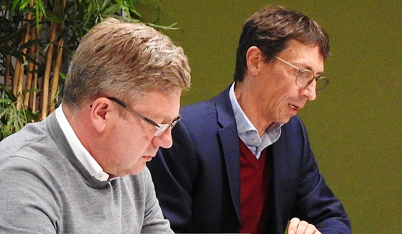 Nachdem der Geschäftsführer des Planungsverbandes Marc Wißmann (rechts im Bild) das Aufgaben-Spektrum des Verbands vorgestellt hatte in der Sondersitzung im Rathaus, gab Bürgermeister Josef Niedermeier (links im Bild) dem Gremium eine starke Empfehlung zur Entscheidungsfindung mit auf den Weg, dem Planungsverband doch beizutreten.