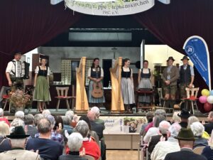 Mit einem abwechslungsreichen Programm aus traditioneller und beschwingter Volksmusik sorgten die „Familienmusik Sinhart“, der „Schmid-Zwoagsang“ und die „Schmankerlmusi“ für ein rundum gelungenes Konzert. Immer wieder war aus dem Publikum ein begeistertes „Wie schön“ oder „Bravo“ zu hören. Die „Familienmusik Sinhart“ begeisterte mit Geige, Klarinette, Harfe, Posaune, Diatonischer, Hackbrett, Gitarre und Kontrabass, dazu das Harfenduo der Töchter Elisabeth und Julia. Beim „Schmid-Zwoagsang“ traten Vater Markus und Tochter Annamirl souverän erstmalig zu zweit auf, nachdem die Mutter kurzfristig ausfiel – und ernteten dafür besonders herzlichen Applaus. Bei der „Schmankerlmusi“ – das Ehepaar Sinhart plus Markus Schmid – kamen zu Diatonischer oder Akkordeon entweder Okarina, Gitarre, Hackbrett oder Kontrabass dazu.