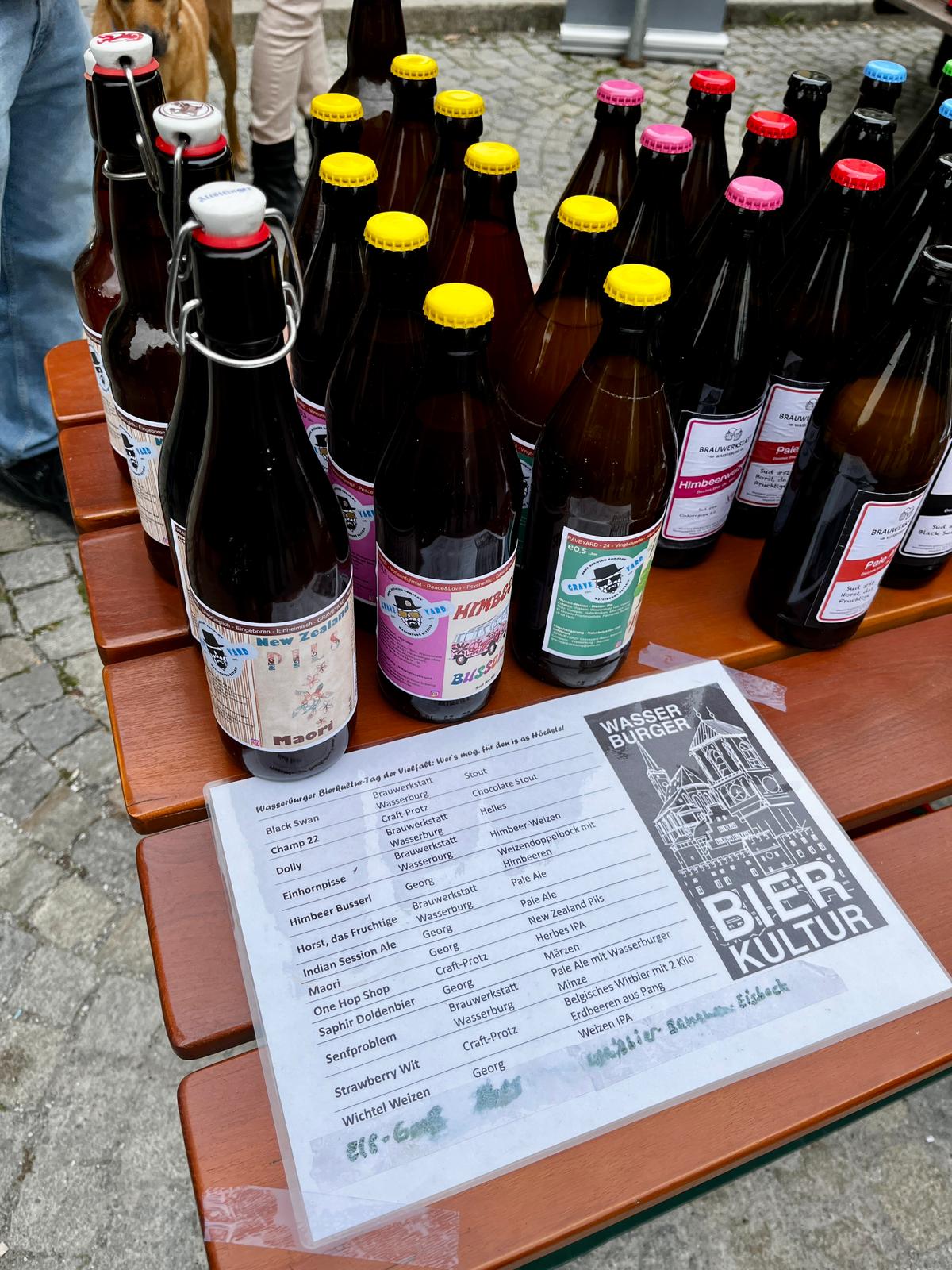 Die Welt des Bieres ist von einer riesigen Geschmacks- und Sortenvielfalt geprägt, in die der Verein Wasserburger Bierkultur heute einen Einblick gab. Hobbybrauer des Vereins boten in der Altstadt ihr Selbstgebrautes zum Verkosten an. Dabei gab es die seltene bis einmalige Gelegenheit, exotische Sorten und Interpretationen in kleinen Portionen zu „proBieren“. Vom Himbeer-Einhorn-Weißbier und Eisbock, über Chocolate Stout, India Pale Ale und Erdbeer-Wit und vielem mehr zum vertrauten Weißbier kamen nicht nur Bierenthusiasten und Experimentierfreudige auf ihre Kosten. Der Stand in der Salzsenderzeile war dicht umlagert.