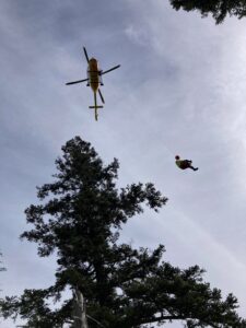 Drei Bergwachtmänner der Wasserburger Bergwacht erreichten die Einsatzstelle zeitgleich mit dem parallel alarmierten Rettungshubschrauber Christoph 1, der einen Notarzt und einen Notfallsanitäter per Winde an der Unfallstelle absetzte. Zur weiteren Absicherung in dem Steilgelände nahm Christoph 1 noch zwei Luftretter der Bereitschaften Wasserburg und Aschau an der Steinlingalm auf und flog sie zur Unfallstelle.