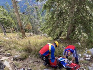 Heute Mittag wurde die Dienstmannschaft der Wasserburger Bergwacht  zu einer Wanderin am Gipfelgrat der Gederer Wand alarmiert. Eine 32-jährige Frau aus dem Landkreis war gestürzt und knapp 20 Meter über steiles, felsdurchsetztes Waldgelände abgerutscht.