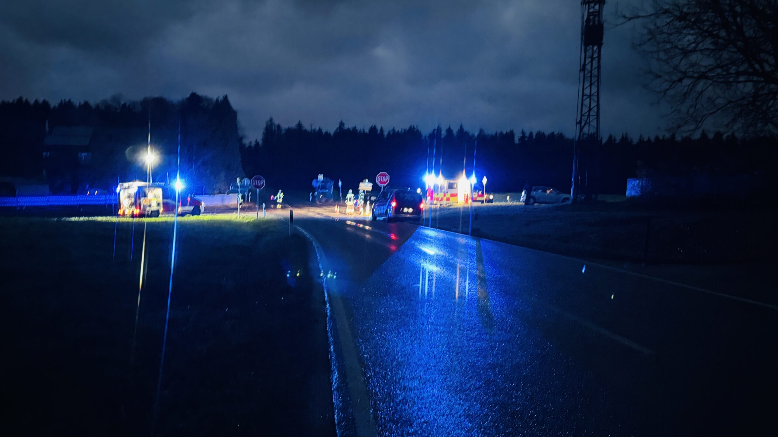 Feuerwehr Kling, Rettungsdienst und Polizei auf Kreisstraße zwischen Wasserburg und Schnaitsee im Einsatz