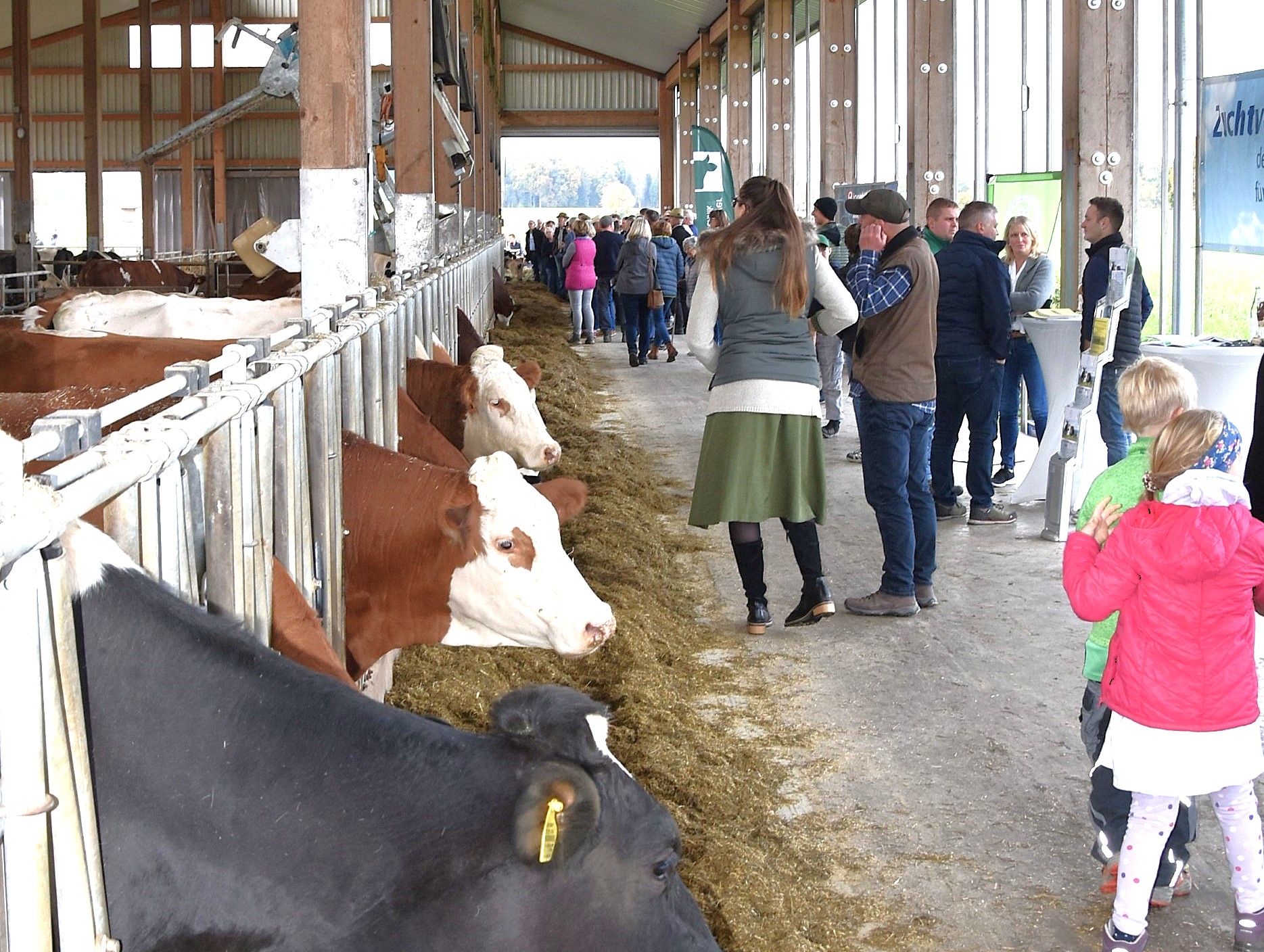 Seit vielen Jahren besuchen die ehemaligen Landwirtschaftsschüler am Kirchweihmontag einen landwirtschaftlichen Vorzeigebetrieb. Etwa 500 Besucher, überwiegend Landwirte mit ihren Familien, fanden sich heuer am Hof von Georg und Jenny Dürr in Ödenhub in der Gemeinde Großkarolinenfeld ein. Das Paar hat in den letzten Jahren seine elterlichen Betriebe zusammengeschlossen und einen neuen Milchviehstall gebaut.