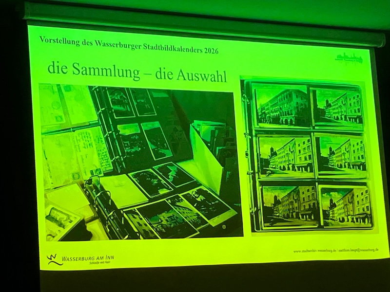 Matthias Haupt wies dann darauf hin, dass ein großer Teil der Postkarten, die das Stadtarchiv aufbewahre, aus der Sammlung von Gerhard Kannengießer stammten, der an die 5.000 historische Postkarten aus Wasserburg und Umgebung gesammelt habe. Es habe sich dem Redaktionsteam natürlich auch die Frage gestellt, wie man 5.000 Postkarten auf 12 Monatsansichten herunterbrechen könne.