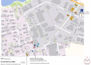 Es werden hier Grabungen für Kabellegung und der Anschluss einer neuen Trafostation für den Penny-Markt im Auftrag der Bayernwerke durchgeführt.