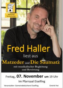 Die Eiselfinger Gemeindebücherei veranstaltet auch in diesem Jahr wieder eine Lesung mit einem bekannten Autor. Fred Haller, der in Eggenfelden lebt, liest aus seinen beiden Büchern „Matzeder“ und „Die Saumatz“, in denen es um wahre Geschichten aus den Anfängen des 19.Jahrhunderts geht.