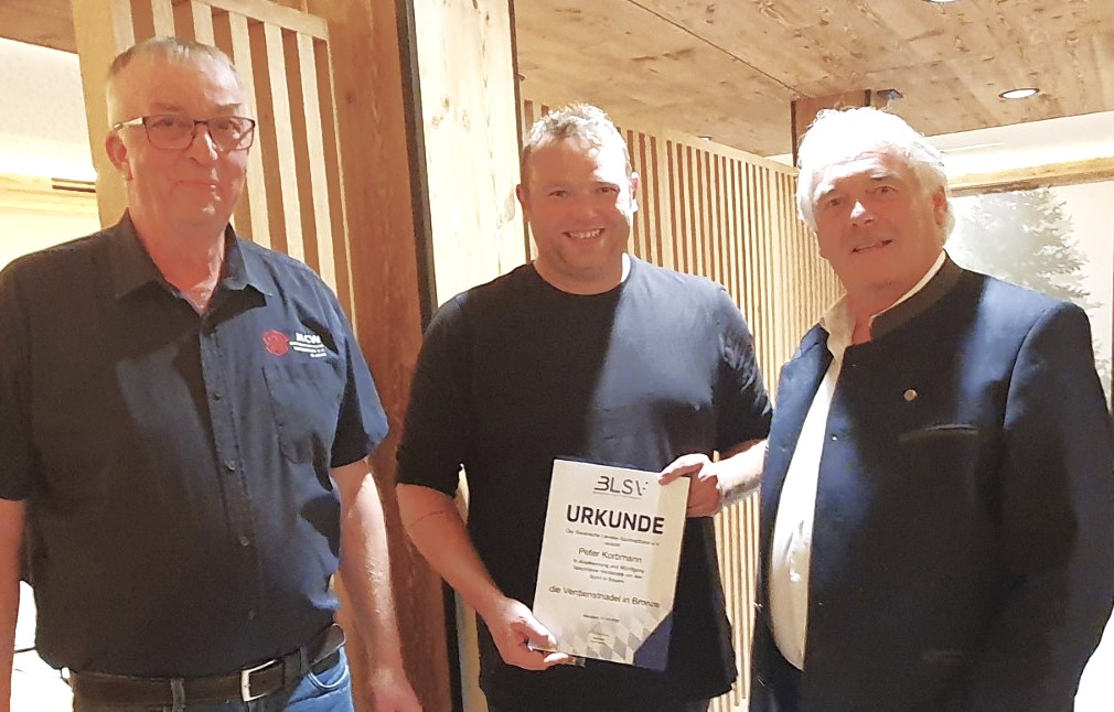 Elke Meyer und Peter Korbmann (oben Bildmitte) erhielten beide die BLSV-Verdienstnadel in Bronze)