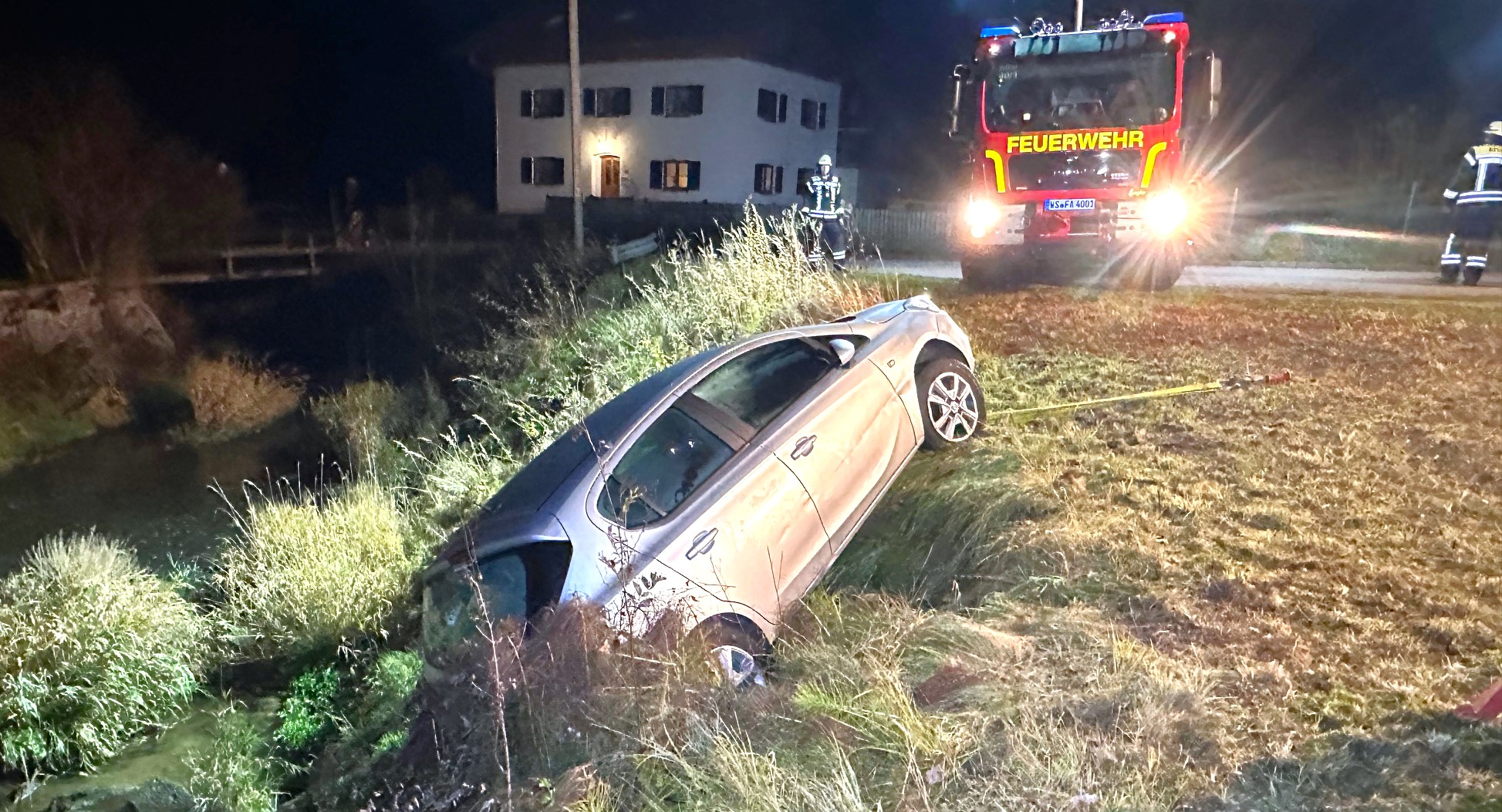 Das Fahrzeug musste zunächst von der Feuerwehr Edling vor weiterem Abrutschen gesichert und anschließend von einem Abschleppdienst geborgen werden.