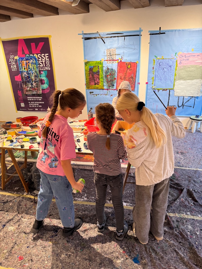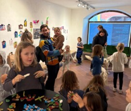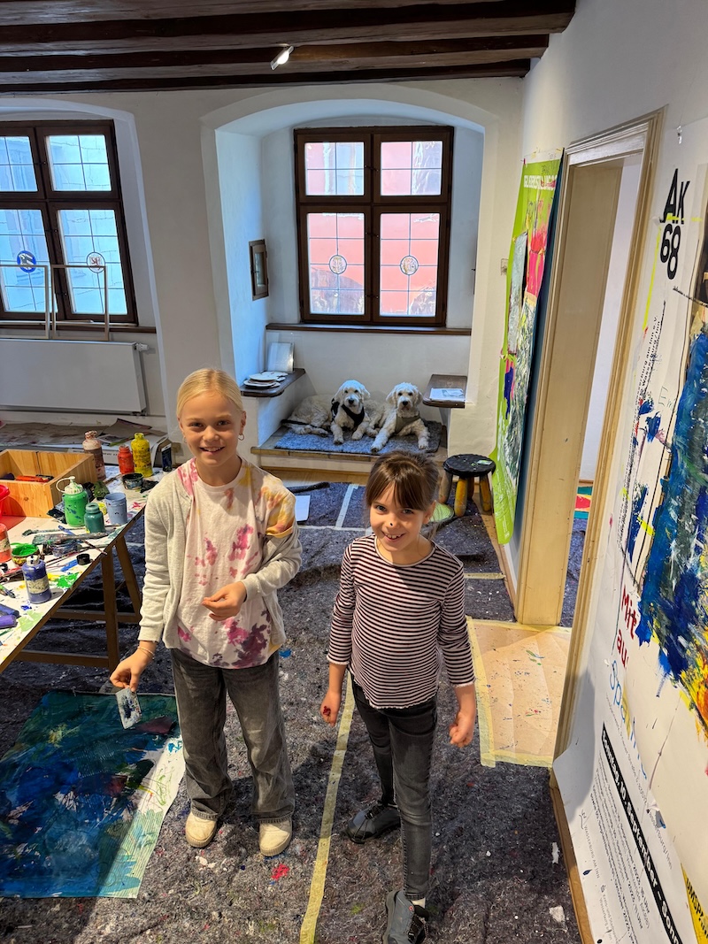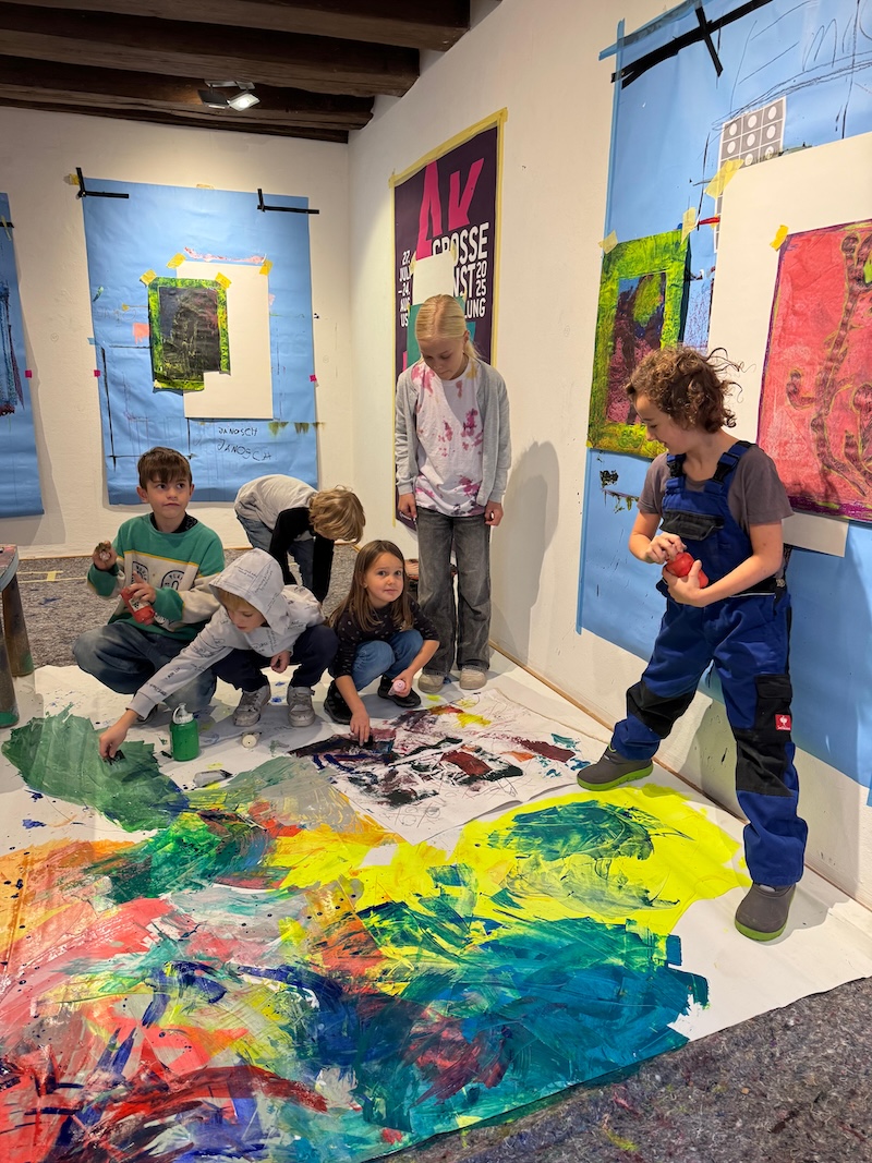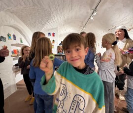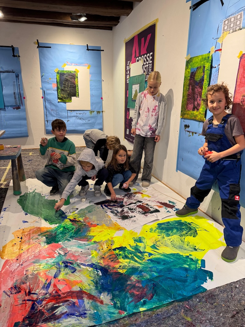 „Wir müssen zehn Prozent der Sanierungskosten von rund 600.000 Euro als Verein selbst aufbringen, damit die Zuschüsse fließen“, ergänzt Katrin Meindl, Vorsitzende der Künstlergemeinschaft (Foto mit den Kindern). Deshalb sei man froh, dass das Innkaufhaus heuer mit seiner Weihnachtsaktion das kulturelle Projekt unterstützt. „Und das ist auch noch ein ganz besonderes: Wir bringen Kinder und Kultur zusammen„, so Meindl. Denn: Kleine Künstler ab fünf Jahren konnten in den Herbstferien nicht nur das Ganserhaus entdecken, sondern auch noch kleine Kunstwerke selber anfertigen – Weihnachtskarten, die ab sofort für den guten Zweck im Innkaufhaus gegen eine Spende zu haben kann. Mindest-Spende pro Karte: 5 Euro. Natürlich darf man auch mehr für den guten Zweck geben.