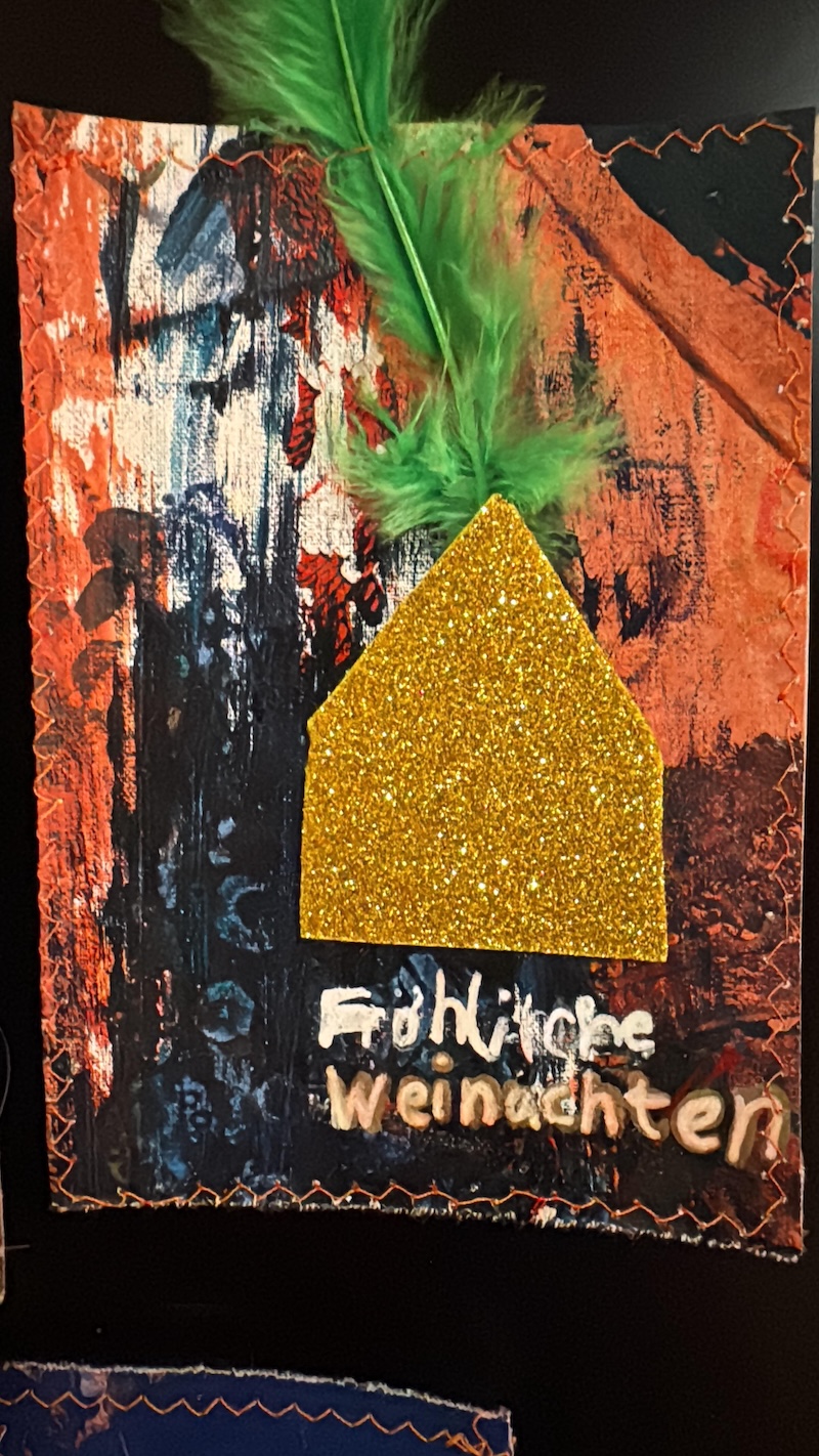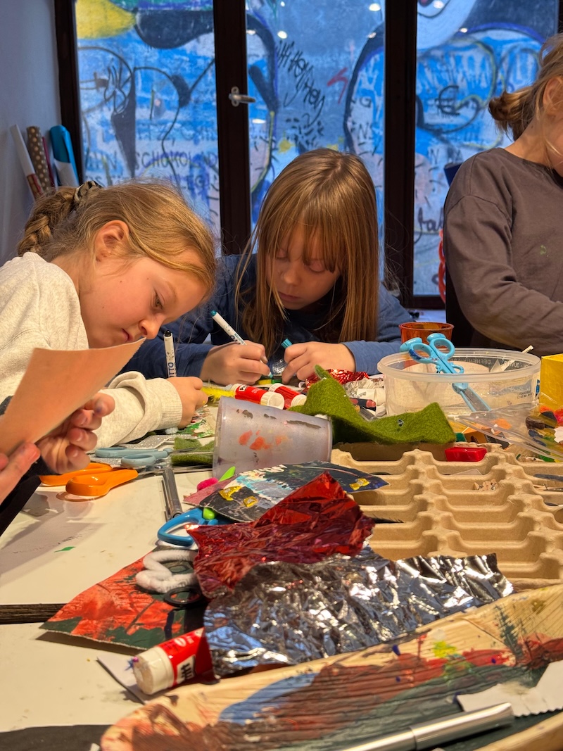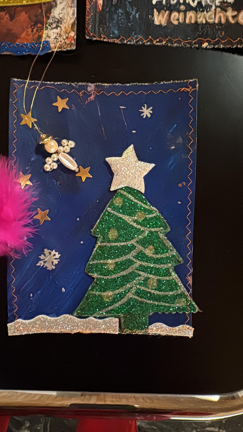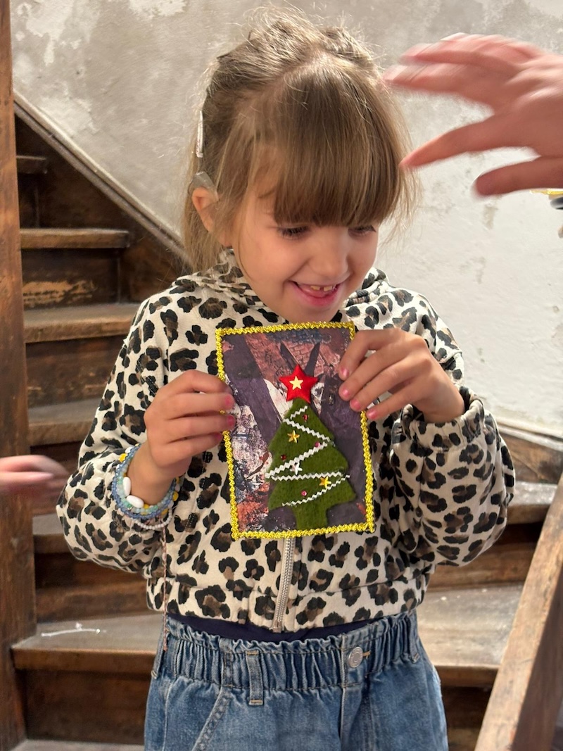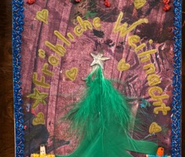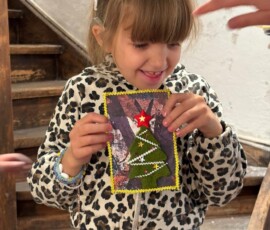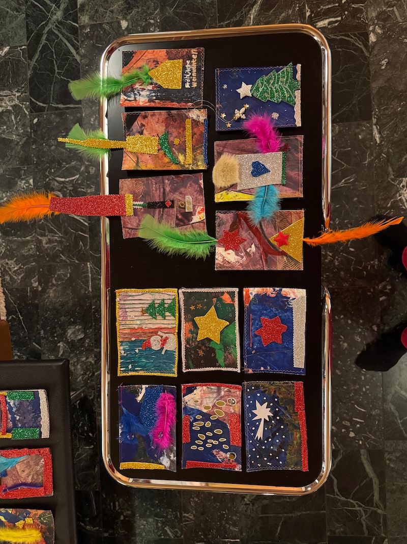 Entstanden sind besondere und individuelle Weihnachtskarten. „An drei Tagen waren die Kinder bei uns bestens aufgehoben. Und sie wurden auch noch an die Kunst herangeführt – stressfrei, spielerisch mit recycelten Materialien, gebührenfrei und mit jeder Menge Spaß“, so Meindl.