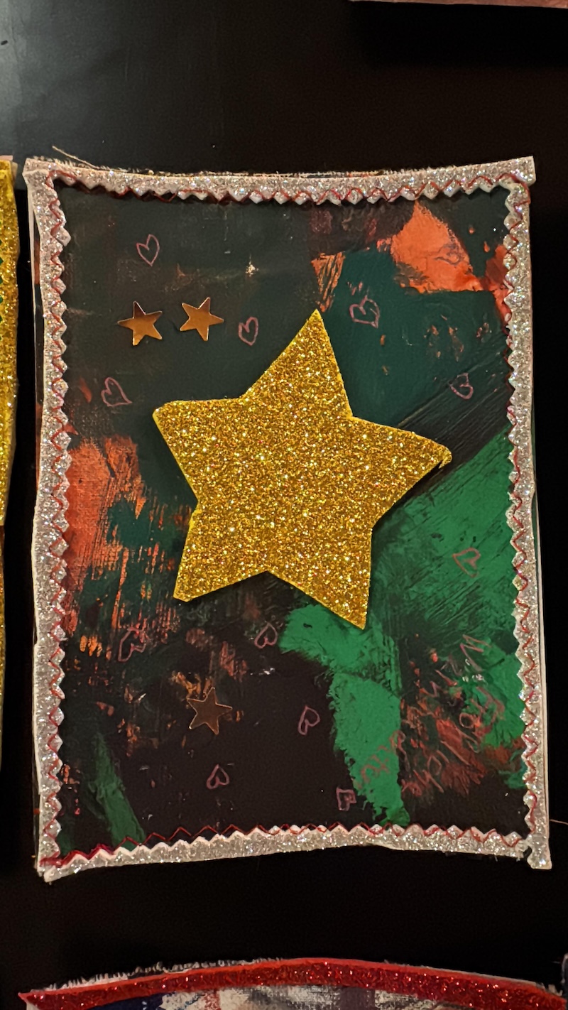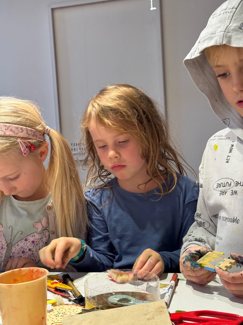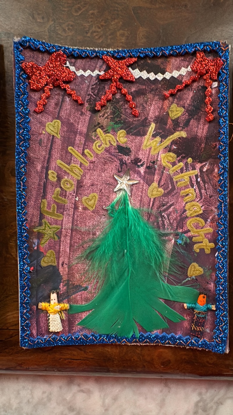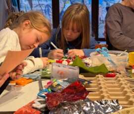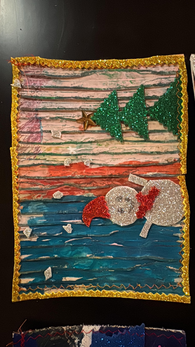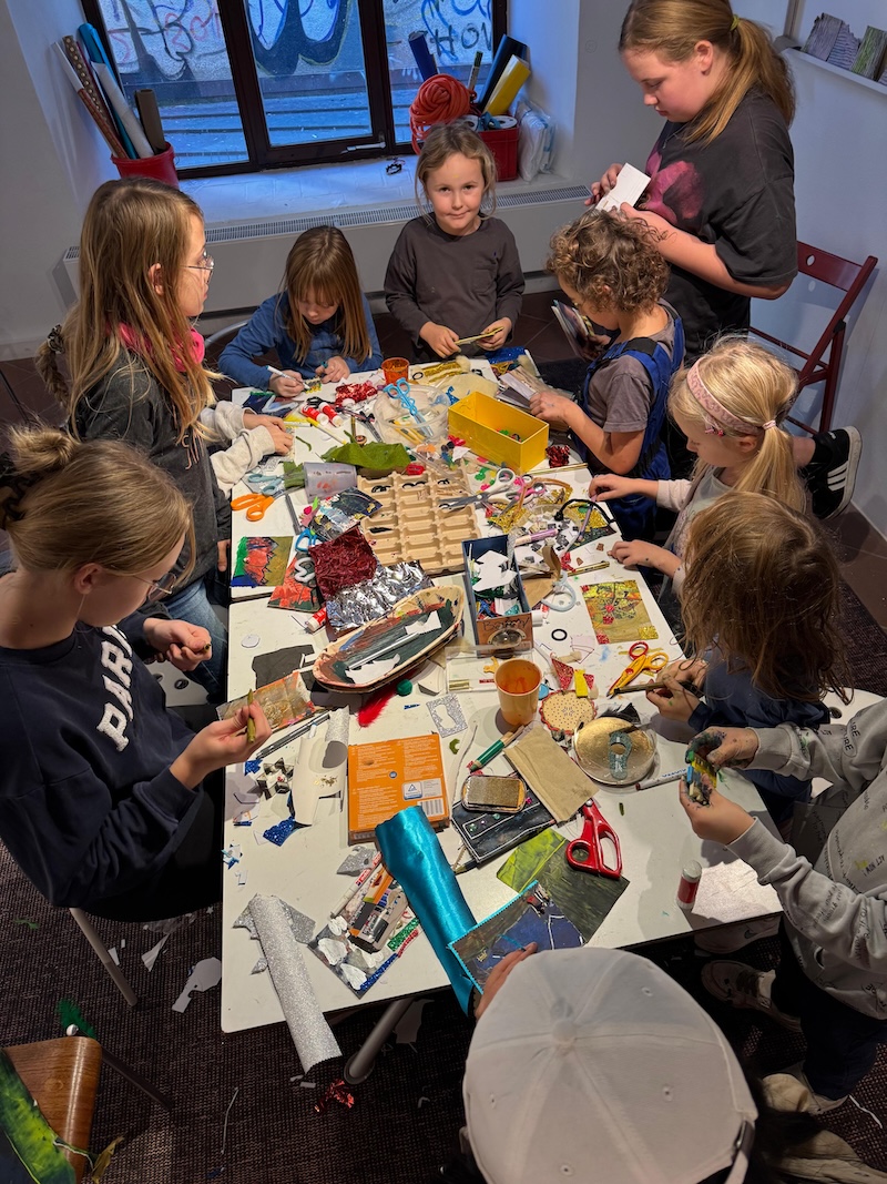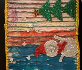Entstanden sind besondere und individuelle Weihnachtskarten. „An drei Tagen waren die Kinder bei uns bestens aufgehoben. Und sie wurden auch noch an die Kunst herangeführt – stressfrei, spielerisch mit recycelten Materialien, gebührenfrei und mit jeder Menge Spaß“, so Meindl.