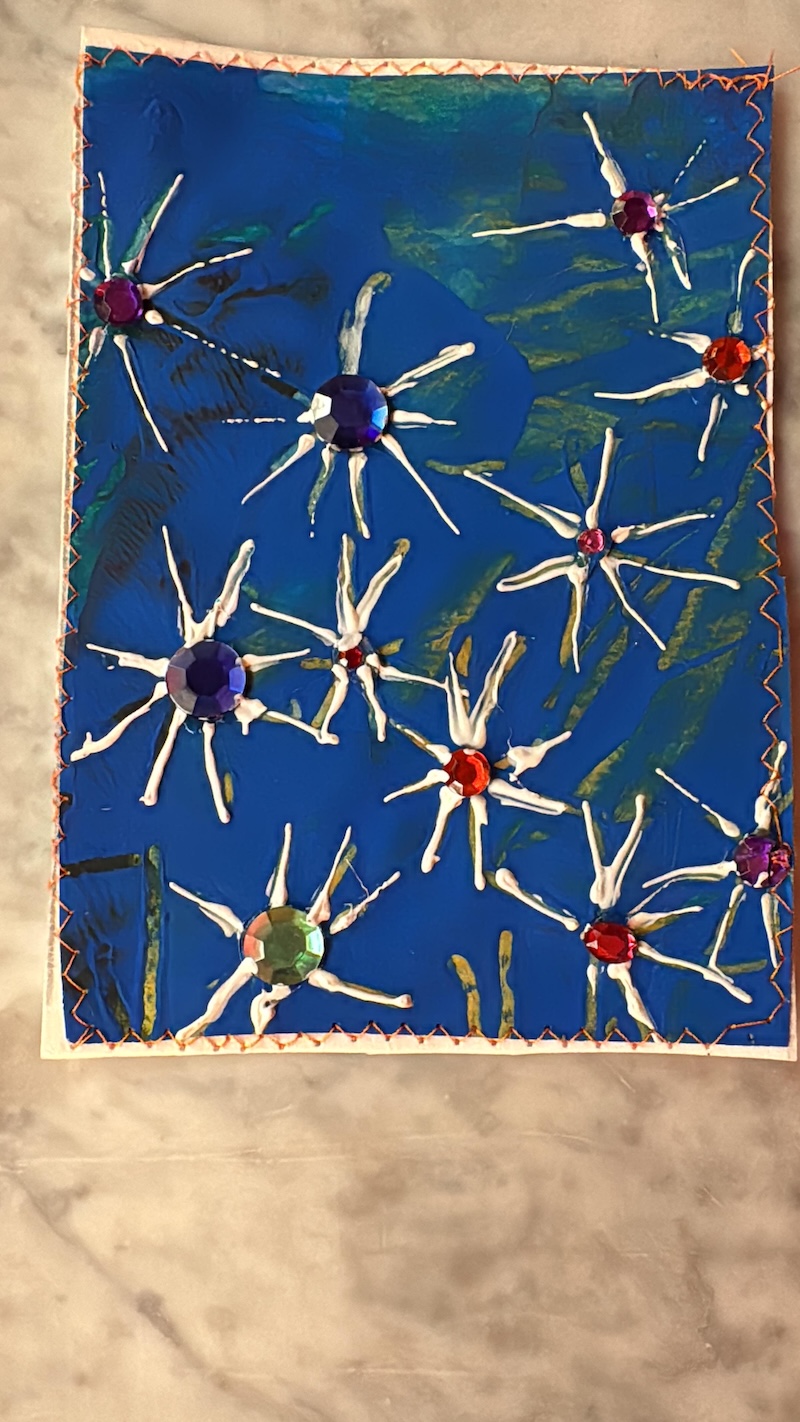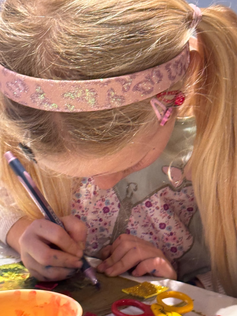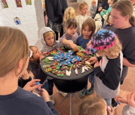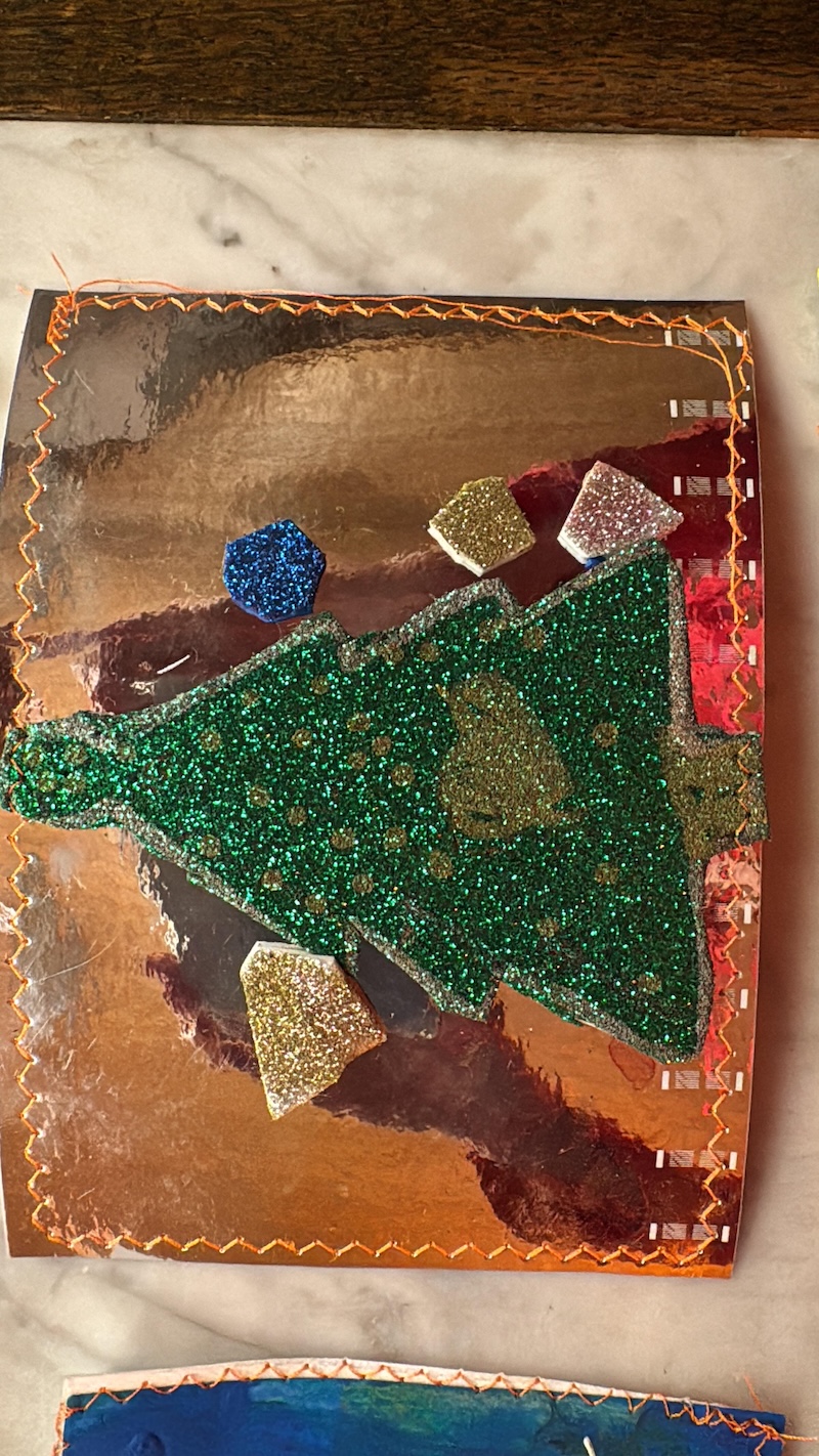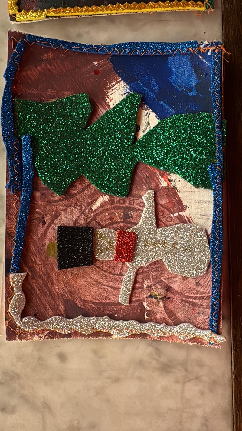 Entstanden sind besondere und individuelle Weihnachtskarten. „An drei Tagen waren die Kinder bei uns bestens aufgehoben. Und sie wurden auch noch an die Kunst herangeführt – stressfrei, spielerisch mit recycelten Materialien, gebührenfrei und mit jeder Menge Spaß“, so Meindl.