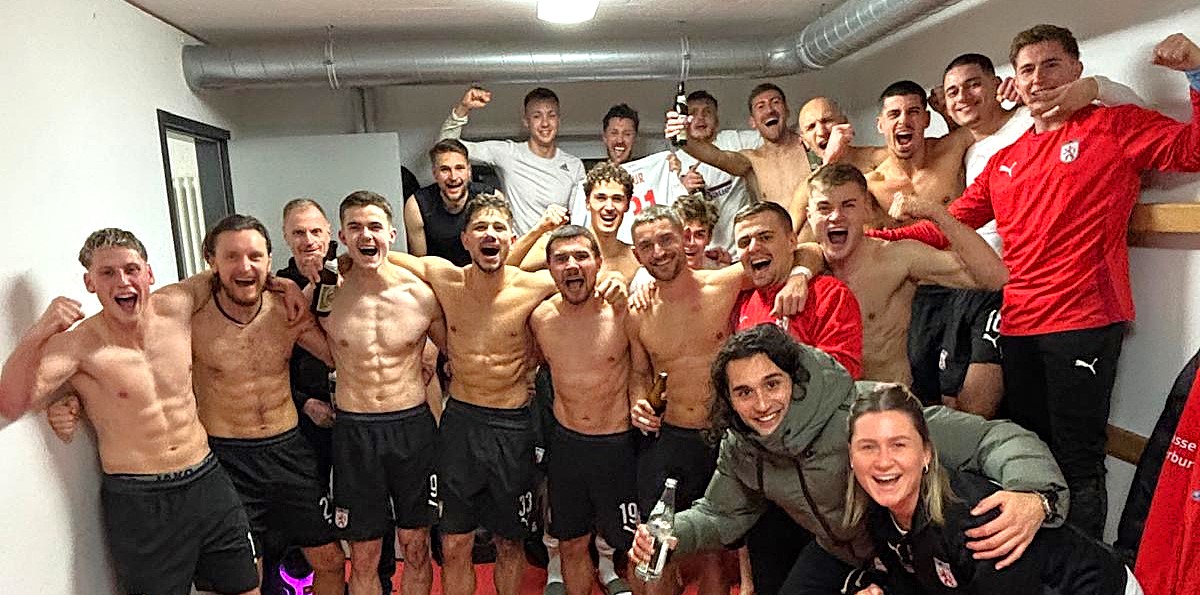 Kabinen-Party: Am Ende jubelte der TSV Wasserburg. Aber 67 Minuten lang hatte der Traunsteiner Abwehrriegel dem Gäste-Druck standgehalten im Landesliga-Derby vor über 500 Zuschauern am gestrigen Freitag-Abend.