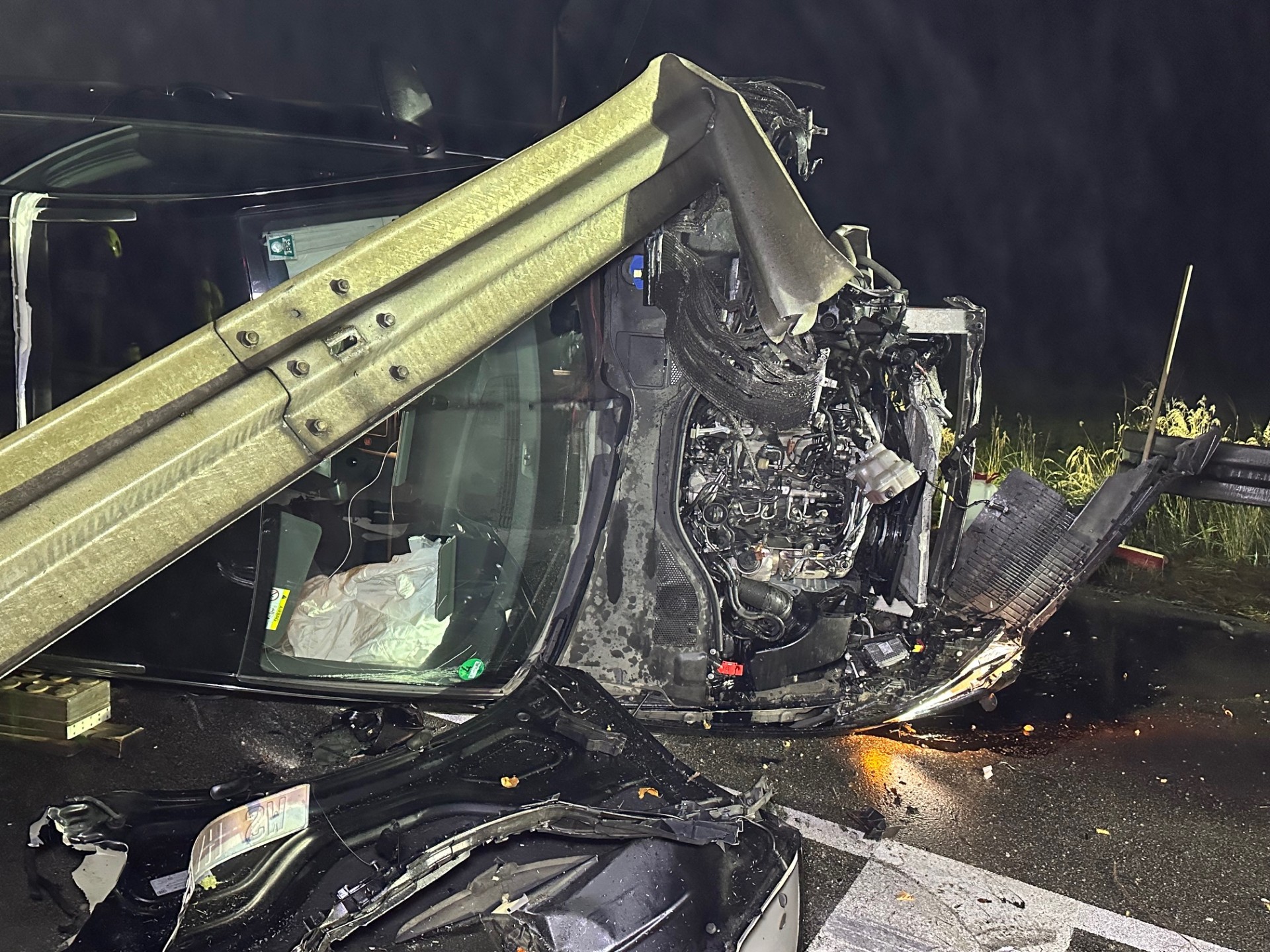 In Folge des Aufpralls in die Leitplanke wurde der Pkw wieder zurück auf die Fahrbahn geschleudert, wo er letztlich mittig zum Liegen kam.
