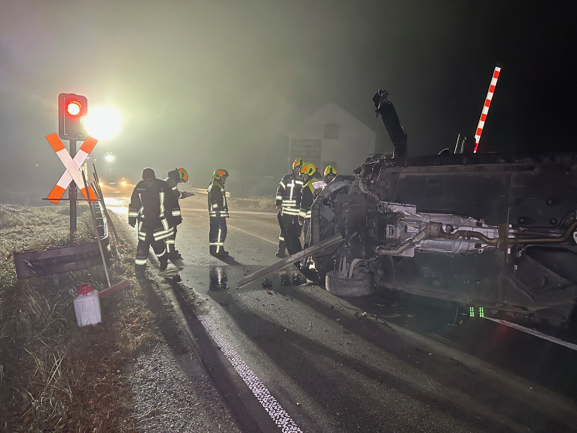Der junge Mann habe noch versucht, mit seinem Wagen auszuweichen – der Audi kam dabei jedoch nach links von der B15 ab und kollidierte dort mit der am Bahnübergang befindlichen Leitplanke und Bahntechnik.