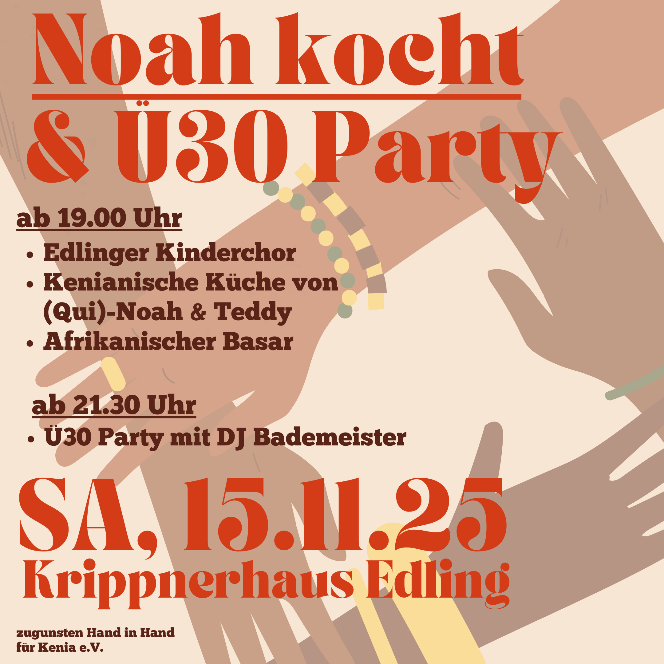 „(Qui)Noah kocht“: Das heißt es wieder am kommenden Samstag, 15. November, beim großen Afrika-Abend im Edlinger Krippnerhaus – zugunsten des heimischen Vereins „Hand in Hand für Kenia“. Der Edlinger Noah Hansen, der aus Kenia stammt und als bayerischer Koch in den sozialen Medien bekannt wurde, kocht eigentlich im Gasthaus „Alpenrose“ am Samerberg.Gemeinsam mit seinem Kollegen und Kumpel Tedros, der aus Eritrea stammt, will Noah die Besucher ab 19 Uhr mit afrikanischen Gerichten verzaubern.