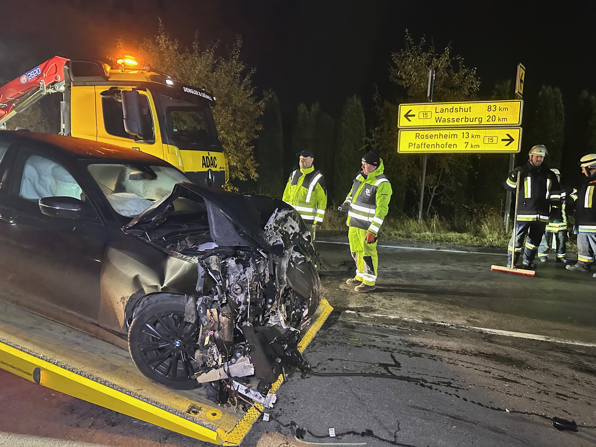 Ein 23-jähriger Autofahrer aus Rott wollte gestern gegen 22.15 Uhr von Hochstätt auskommend in die B15 einfahren. Auf der Bundesstraße lenkte ein 56-jähriger Autofahrer aus Großkarolinenfeld seinen Wagen in Fahrtrichtung Rosenheim. Beim Einfahren übersah der 23-Jährige den Pkw des 56-Jährigen und die Fahrzeuge stießen zusammen. Durch die Wucht des Aufpralles wurde der Pkw des Großkarolinenfelders in die angrenzende Wiese geschleudert, das Auto des Mannes aus Rott kam auf der B15 stark beschädigt zum Stillstand.
