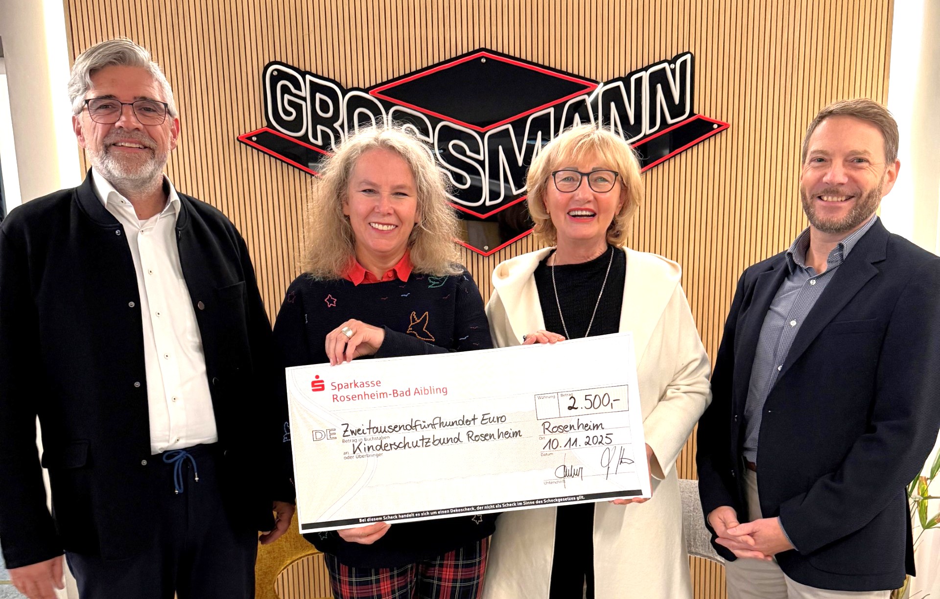 Die Rosenheimer Firma GROSSMANN Bau GmbH & Co. KG setzt auch heuer wieder ein Zeichen der Verbundenheit mit ihrer Heimatregion: Statt Weihnachtsgeschenke an Kunden zu verteilen, fließen großzügige 2.500 Euro in Form einer Spende direkt an den Kinderschutzbund Rosenheim.