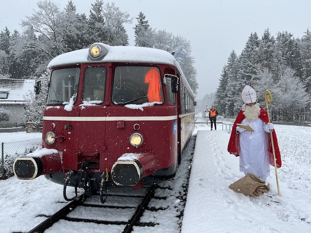 Alle Fahrgäste und natürlich vor allem die Kinder dürfen sich darauf freuen, dass der Nikolaus unterwegs zusteigt und im Zug seine Geschenke verteilt. Zudem gibt es an Bord des geschmückten Zuges Kinderpunsch, Glühwein und Weihnachtsgebäck.
