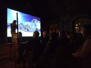 Unglaubliche Bilder, arrangiert mit faszinierenden Filmsequenzen und passender Musik waren für die Besucher ein Erlebnis der besonderen Art. Alexander Huber bewegt sich in Grenzbereichen der vertikalen Welt, im elften Grad alpiner Wände wie auch an den großen Bergen der Welt. Der Extremkletterer zeichnete ein lebendiges Bild vom modernen Alpinismus, zeigte extremes Freiklettern in den Alpen, auf Sardinien wie auch in der Kälte und dünnen Luft der großen Höhe an den wilden Bergen Pakistans.