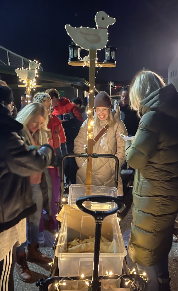 Unterstützt wurden die Organisatoren von den Erzieherinnen und den Kindergartenfamilien. Diese hatten unter anderem im Vorfeld rund 870 Martinsgänse gebacken, die heiß begehrt waren. Ingrid, eine Helferin, die mit einem der beiden Verkaufswagen für die Martinsgänse unterwegs war, zeigte sich begeistert: „Es lief total super mit dem Verkauf der Martinsgänse – ein richtiger Run. Die Lebkuchenmartinsgänse gingen wie jedes Jahr etwas besser. Vielleicht, weil das schon der Geschmack und die Vorfreude auf Weihnachten ist.”
