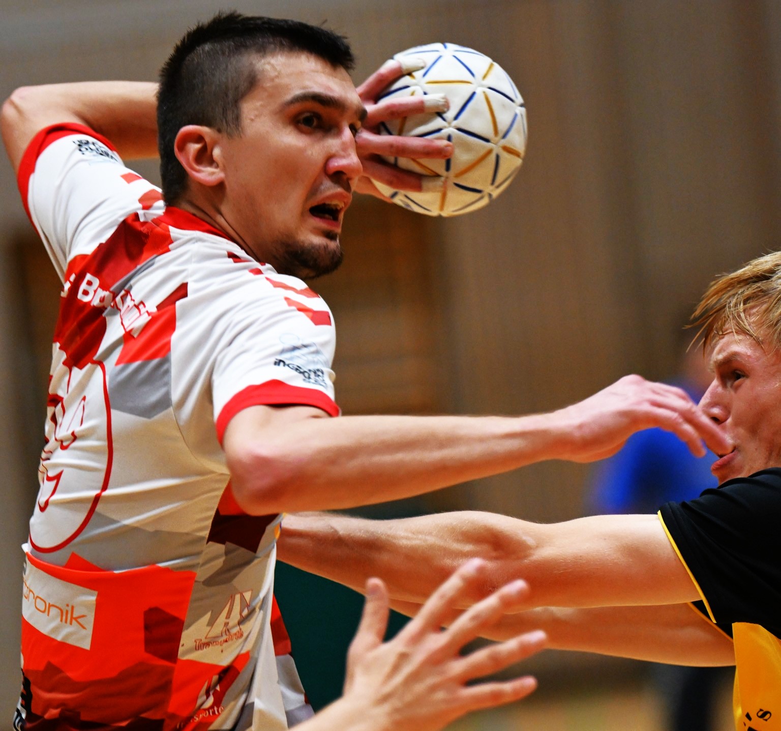 Beide Defensivreihen agierten zu harmlos, wodurch es nach nur acht Minuten bereits 6:6 stand. In der ersten Halbzeit war es auf Bruckmühler Seite insbesondere Youngster Nicolas Wolf, der ein hervorragendes Angriffsspiel präsentierte und immer wieder erfolgreich war. Zwar bekam man die Abwehrschwäche nicht wirklich in den Griff, zielte aber selbst ausreichend Tore, um das Spiel ausgeglichen zu halten und immer wieder sogar knapp in Führung gehen zu können. Zwei unnötige Leichtsinnsfehler vor dem Pausenpfiff bescherten den Bruckmühlern dann doch einen 19:16 Rückstand zur Halbzeit.