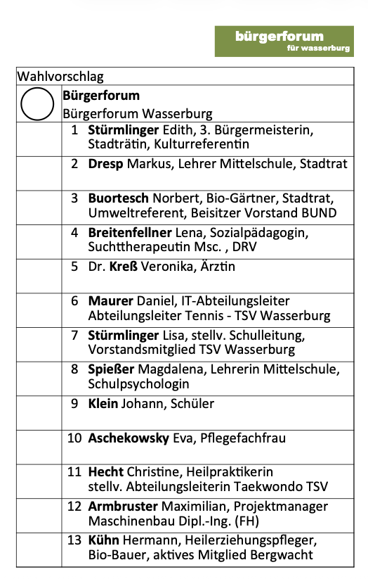 Zum einen fand die Aufstellung der Stadtratskandidaten ihrer Liste statt, zum anderen die Aufstellung des gemeinsamen Bürgermeisterkandidaten Bastian Wernthaler, der auch von CSU, Bündnis 90/Die Grünen und SPD unterstützt wird.