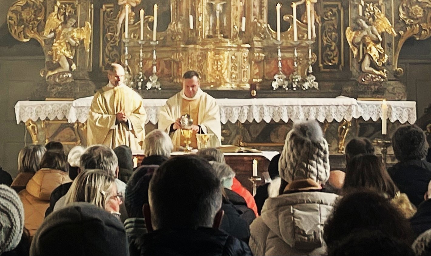 Foto oben: Gemeinsam feierten der Wasserburger Stadtpfarrer Bruno Bibinger (rechts) und Thomas Brei zum Fest Christkönig am Altar der Wasserburger Frauenkirche einen Gottesdienst.