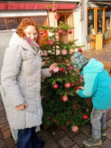 Auch die Wasserburger Stimme hat dieses Jahr einen Baum. Viele rote Kugeln, Sterne und Schleifen sollen die Besucher in den nächsten Wochen erfreuen. Sichtlich Spaß am Schmücken hatten unsere Redakteurin Tanja Geidobler und ihr Sohn Leo.