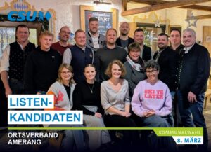 Liste CSU Amerang: Thomas Kriechbaumer, Mandy Mayer, Markus Keller, Laura Mühlberger, Sebastian Stadler, Simon Strell, Andreas Pypetz, Maria Riemer, Adrian Oberbauer, Karina Voit, Max Kienberger, Milena Baldauf, Florian Pillmayer, Raphael Hauner, Leonhard Fischbacher und Andreas Klinghuber.