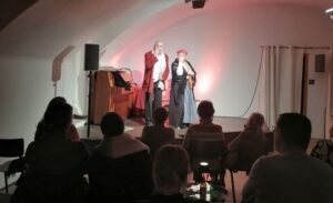 Aber auch die Schwierigkeiten, wie Weiberl und Manderl überhaupt zusammenkommen. Sie spielten ihr Erfolgsprogramm zum letzten Mal in Wasserburg und Region. Die intime Atmosphäre des Gimplkellers am Marienplatz bot den idealen Rahmen, weil sie das Publikum oft direkt ansprachen. Szenen von Karl Valentin und anderen bayerischen Schriftstellern wechselten sich ab mit von Jörg Herwegh geschriebenen Szenen wie die über das Ehepaar Bachholzner. Die unterzogen sich in ihrer Ehekrise einer Therapie nach der PBSILZ-Methode nach der Dr. Stern: Positive Bild-Suggestionen in langjährigen Zweierbeziehungen. Der Dauergrantler Klaus muss dabei etwas falsch verstanden haben. Die Lachmuskeln der Zuschauer waren auf alle Fälle im Dauereinsatz. Mit viel Selbstironie nahmen die beiden Eheleute sich selbst und ihren eigenen Ehealltag zwischen den Szenen gehörig auf den Arm.