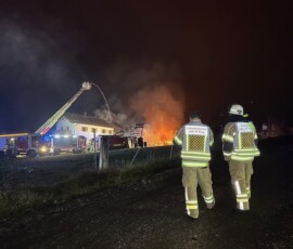 Zahlreiche Feuerwehren heute Nacht bei Brand auf landwirtschaftlichem Anwesen im Einsatz