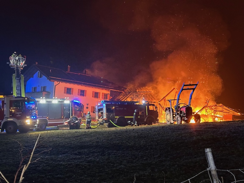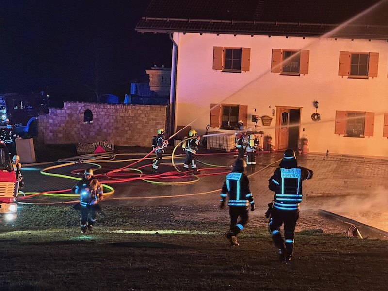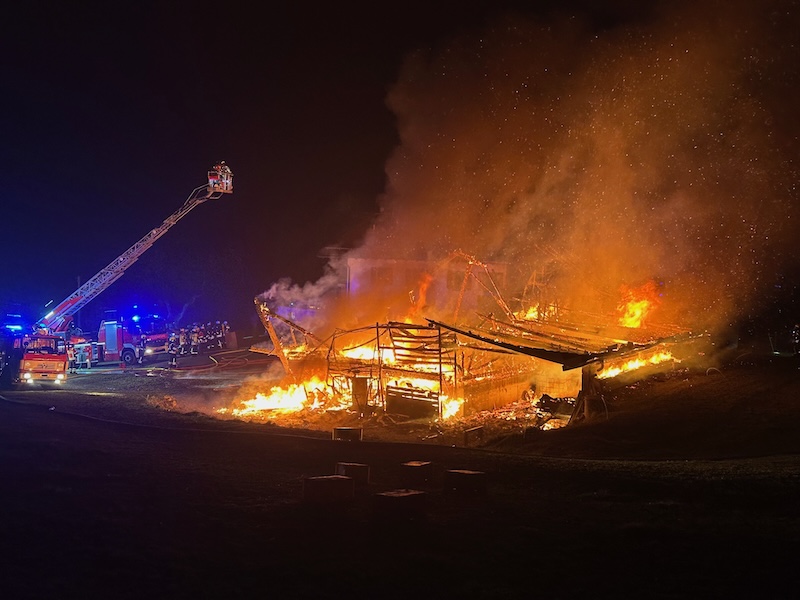 Zahlreiche Feuerwehren heute Nacht bei Brand auf landwirtschaftlichem Anwesen im Einsatz