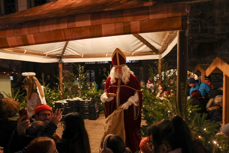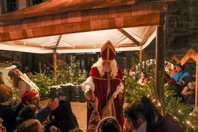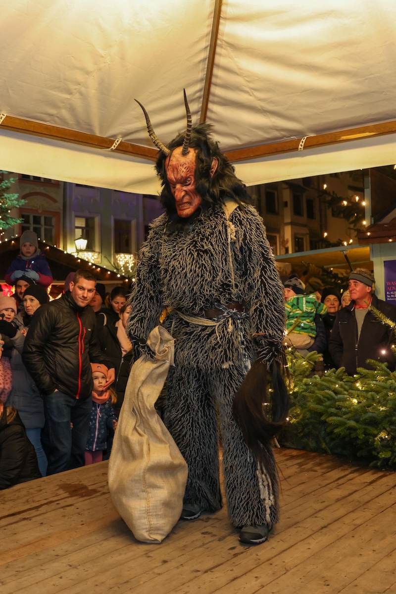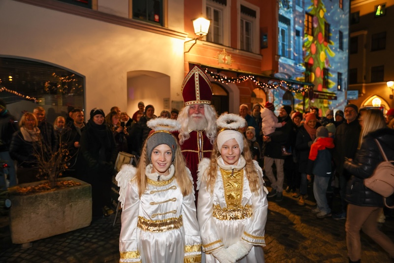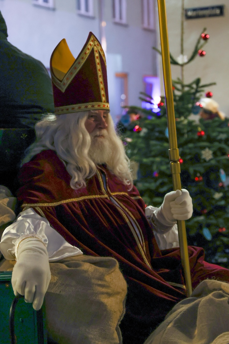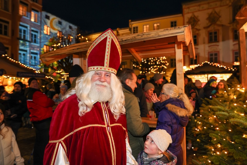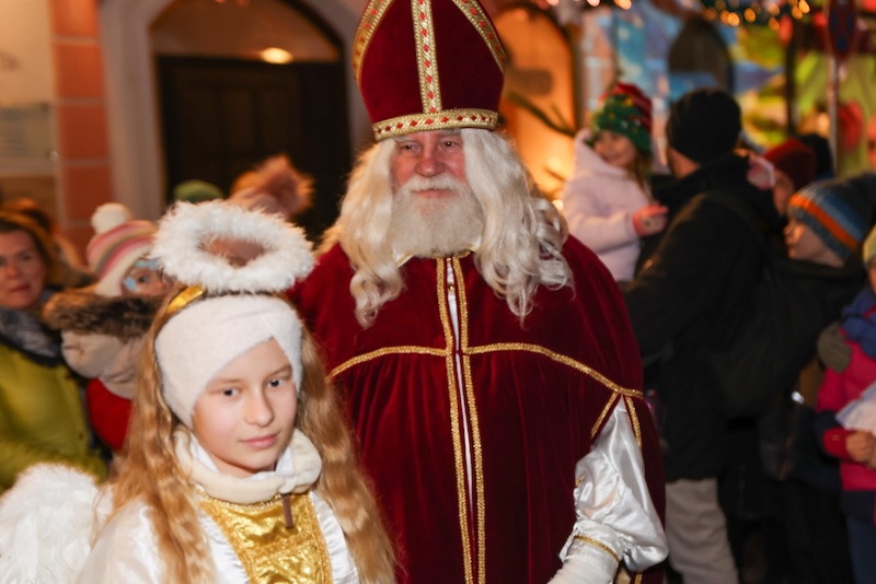 Hunderte kleine Besucher kamen am gestrigen Samstag mit ihren Eltern zur Winterwaldbühne vor dem Wasserburger Rathaus. Dort verteilte der Nikolaus (Carl-Heinz-Hartmann) zusammen mit dem Wasserburger Weihnachtsengerl Geschenk-Sackerl an die Kinder. Spendiert wurden diese wie immer vom WFV und von der REWE-Famlie Sattler. Der Nikolaus machte sich anschließend wie alle Jahre mit seiner Kutsche auf durch die Altstadt. Auch der Krampus war mit dabei. Fotos: Stefan Bodmeier