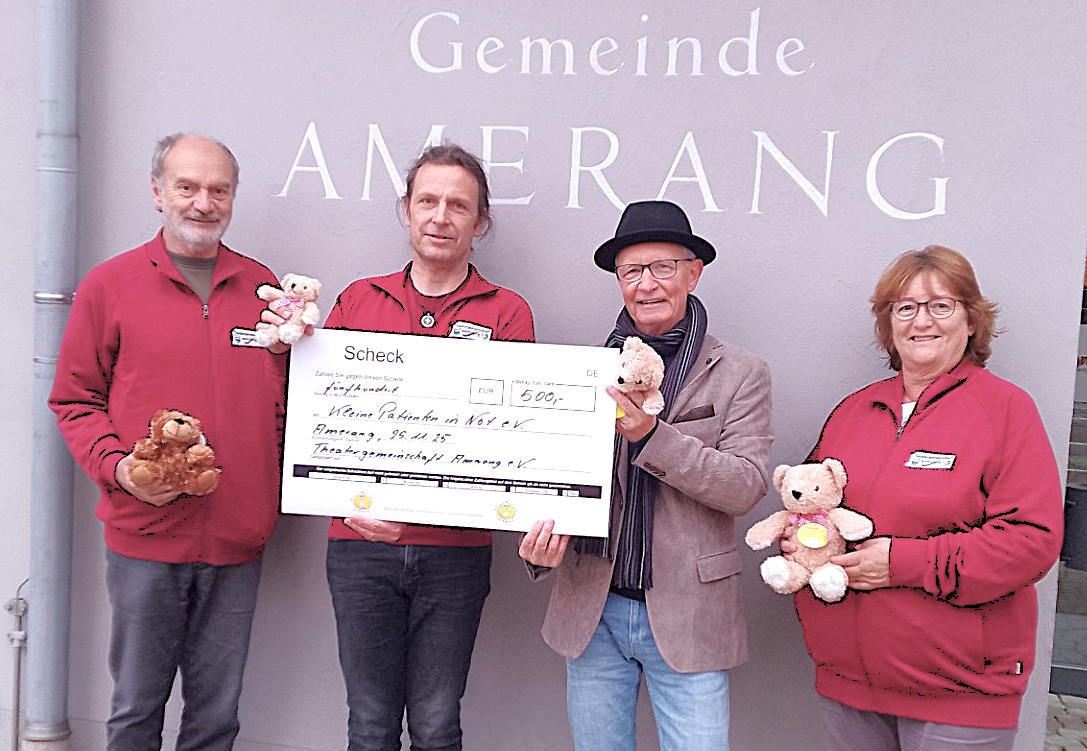 Die Theatergemeinschaft Amerang unterstützt den Verein jetzt gerne mit einer Spende von 500 Euro, da es eine tolle Unterstützung für Kinder in schwierigen Zeiten sei.
