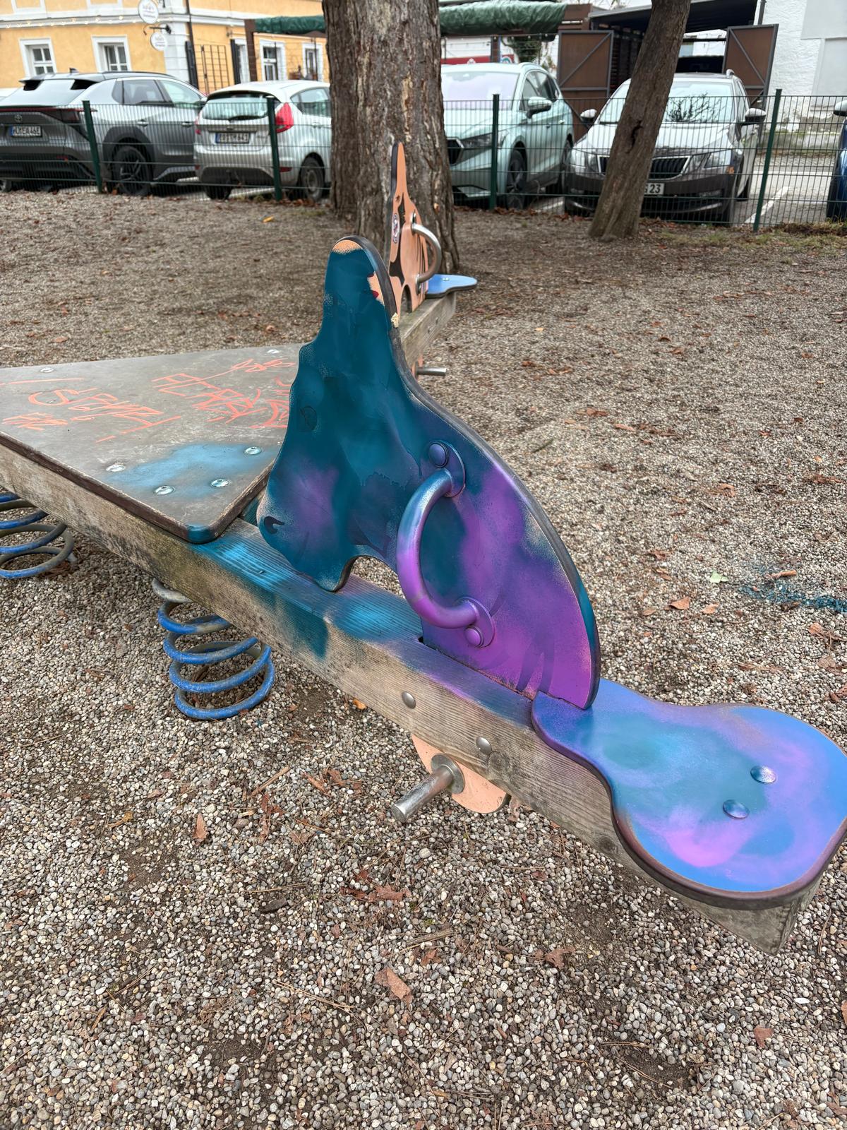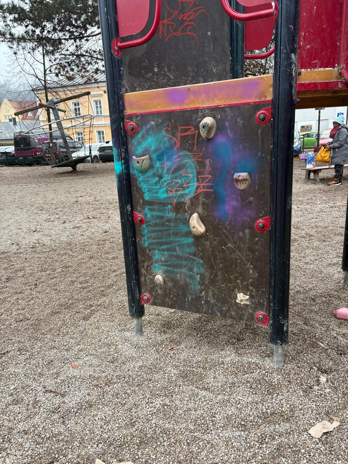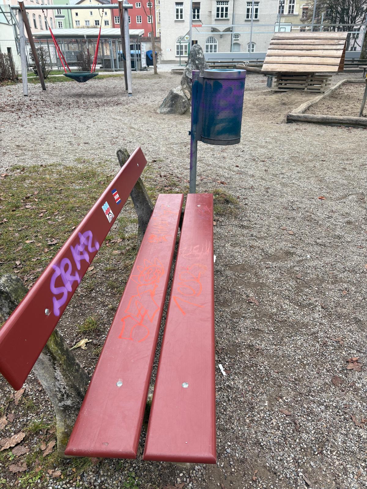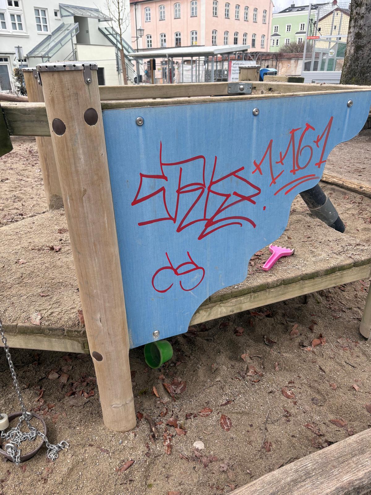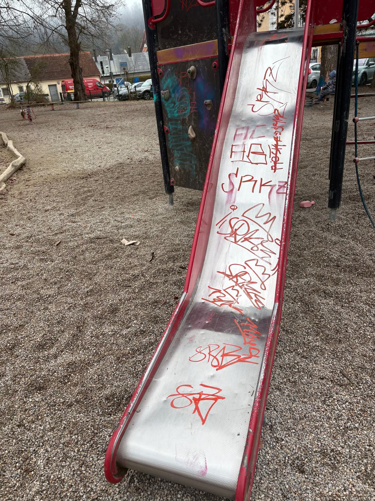Bei Nacht und Nebel haben Unbekannte erheblichen Sachschaden am Kinderspielplatz am Palmanopark in der Wasserburger Altstadt angerichtet. Die Täter besprühten und beschmierten zahlreiche Spielgeräte und Sitzbänke. Ein Anwohner: „Es wird wohl ein frommer Wunsch bleiben, aber vielleicht können die Verursacher die Schmierereien ja bei Nacht und Nebel auch wieder beseitigen, bevor sich die Stadt als Eigentümer und damit die Polizei einschaltet.“