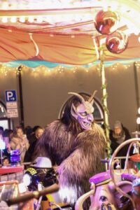 Dass sie zur Tradition während der Adventszeit gehören, war schnell zu merken. Die Fans stürmten den Genossen hinterher, Fotos wurden geknipst und Wasserburg somit erneut zu einer Kulisse des Brauchtums. Auch für die anwesenden Kinder war es ein ganz besonderes Erlebnis, sie schüttelten den Perchten sogar die Hand – ein kleiner Besucher drehte sogar mutig mit einem Percht eine Runde im Karussell.