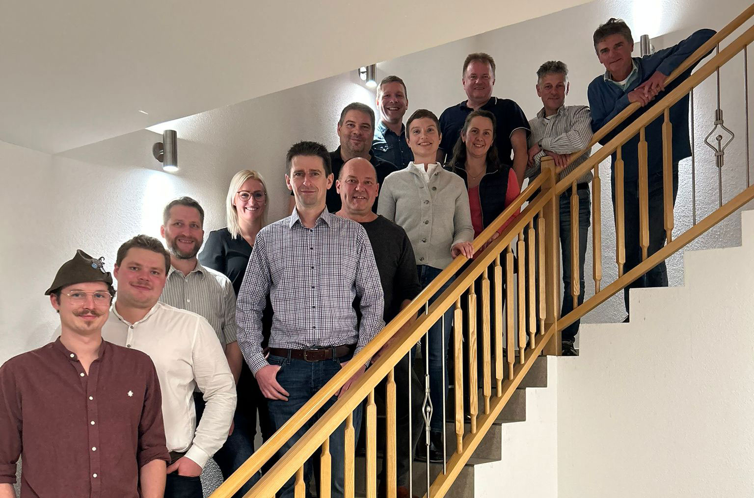 Das Foto zeigt von links: Michael Meisl, Justus Pförtner, Johannes Kaiser, Stefanie Mariel, Martin Weinmann, Philipp Lamprecht, Ludwig Niedermaier, Georg Sachsenhammer, Dr. Maria Magdalena Jarczyk, Susanne und Franz Oberloher, Franz Löw und Dr. Wolfgang Wittwer.