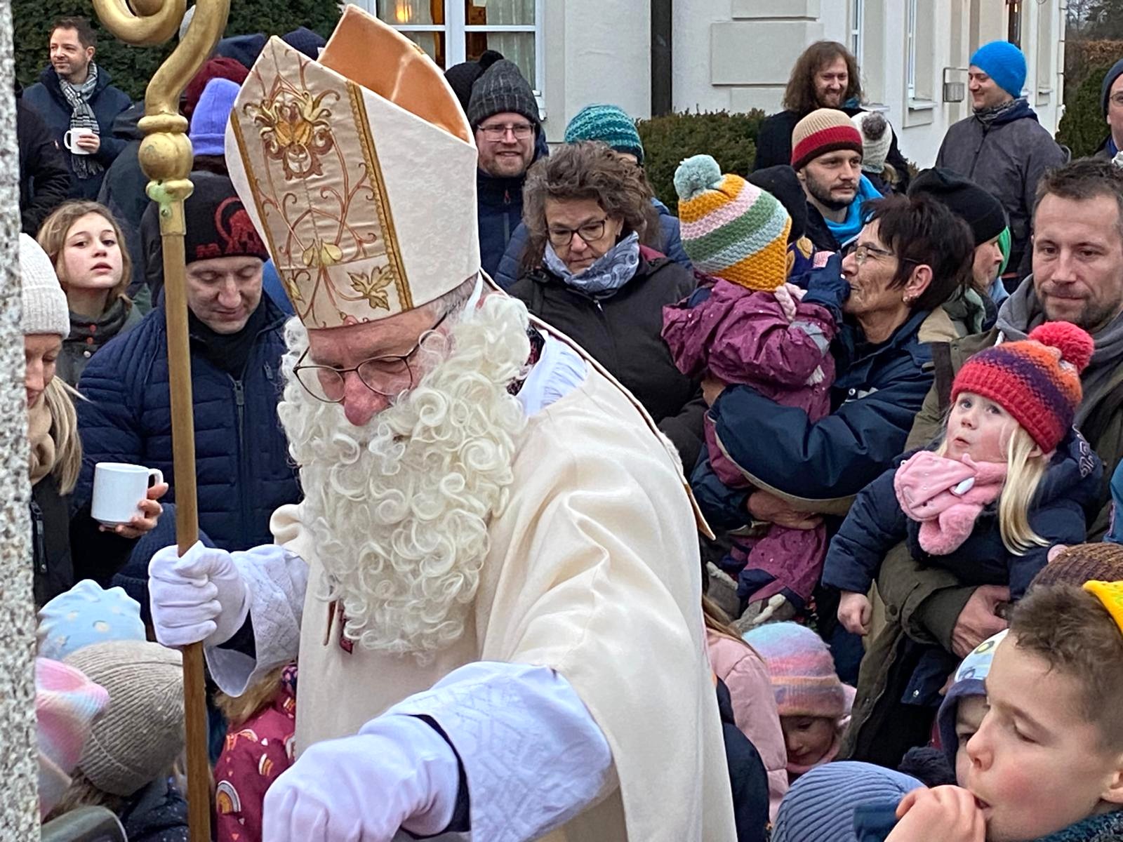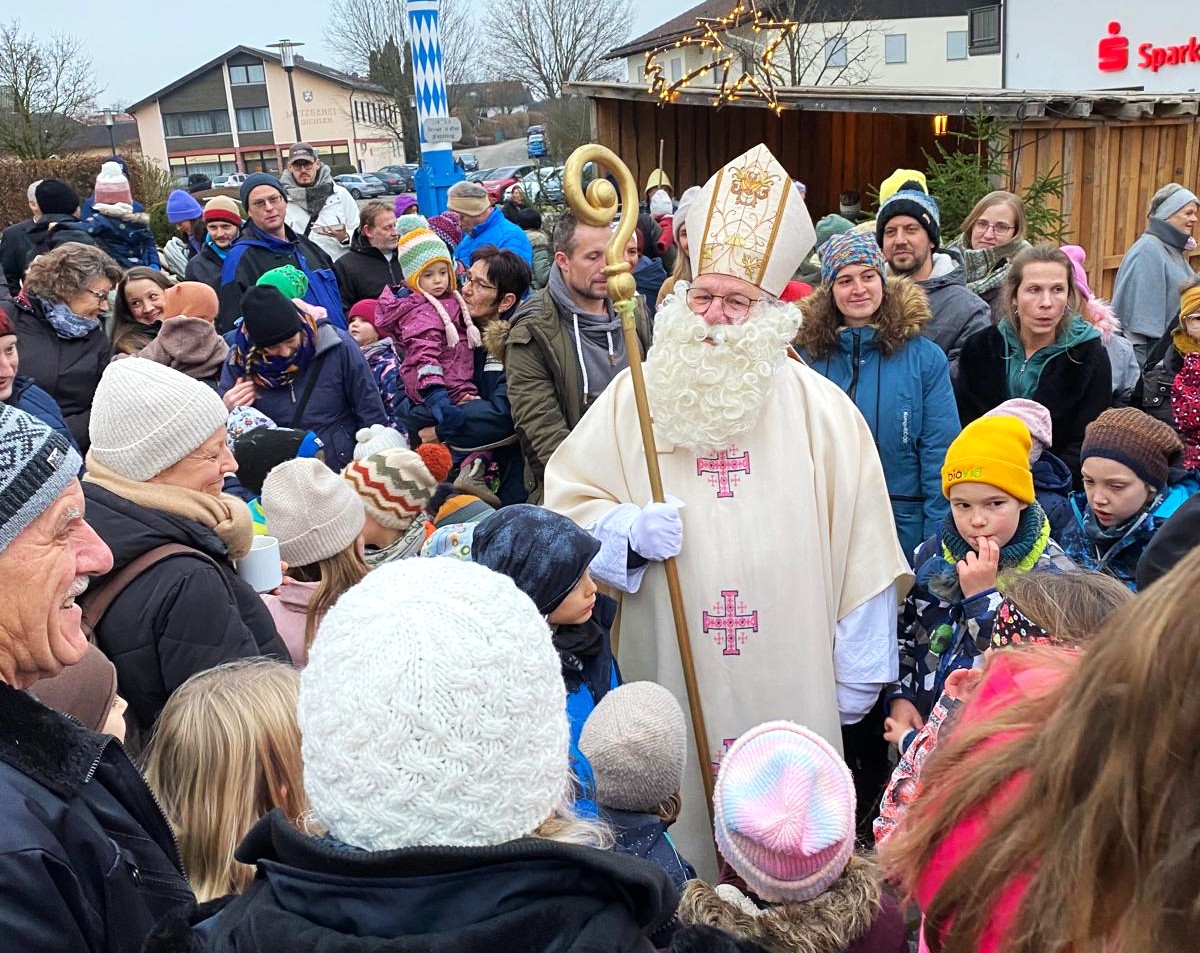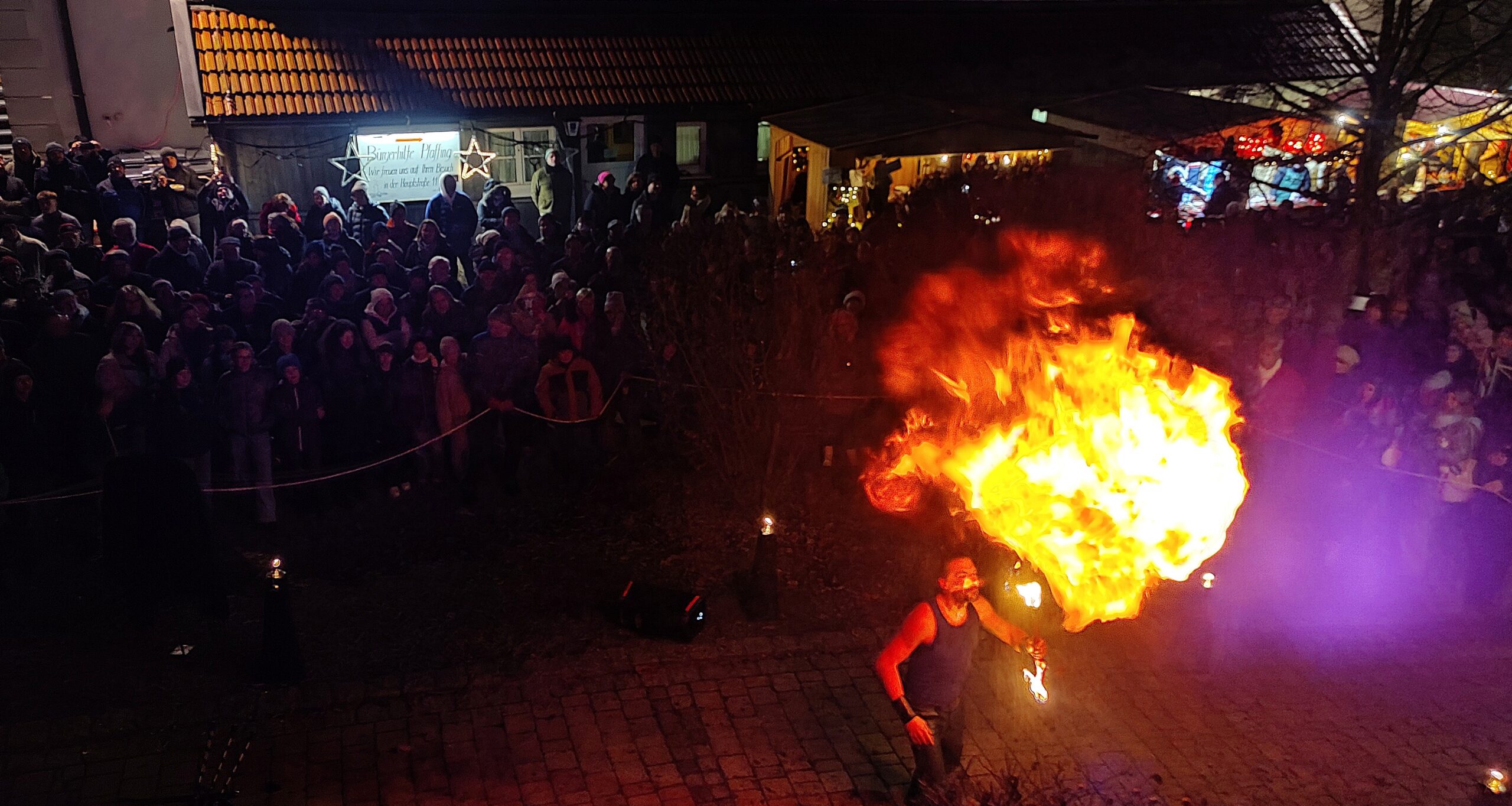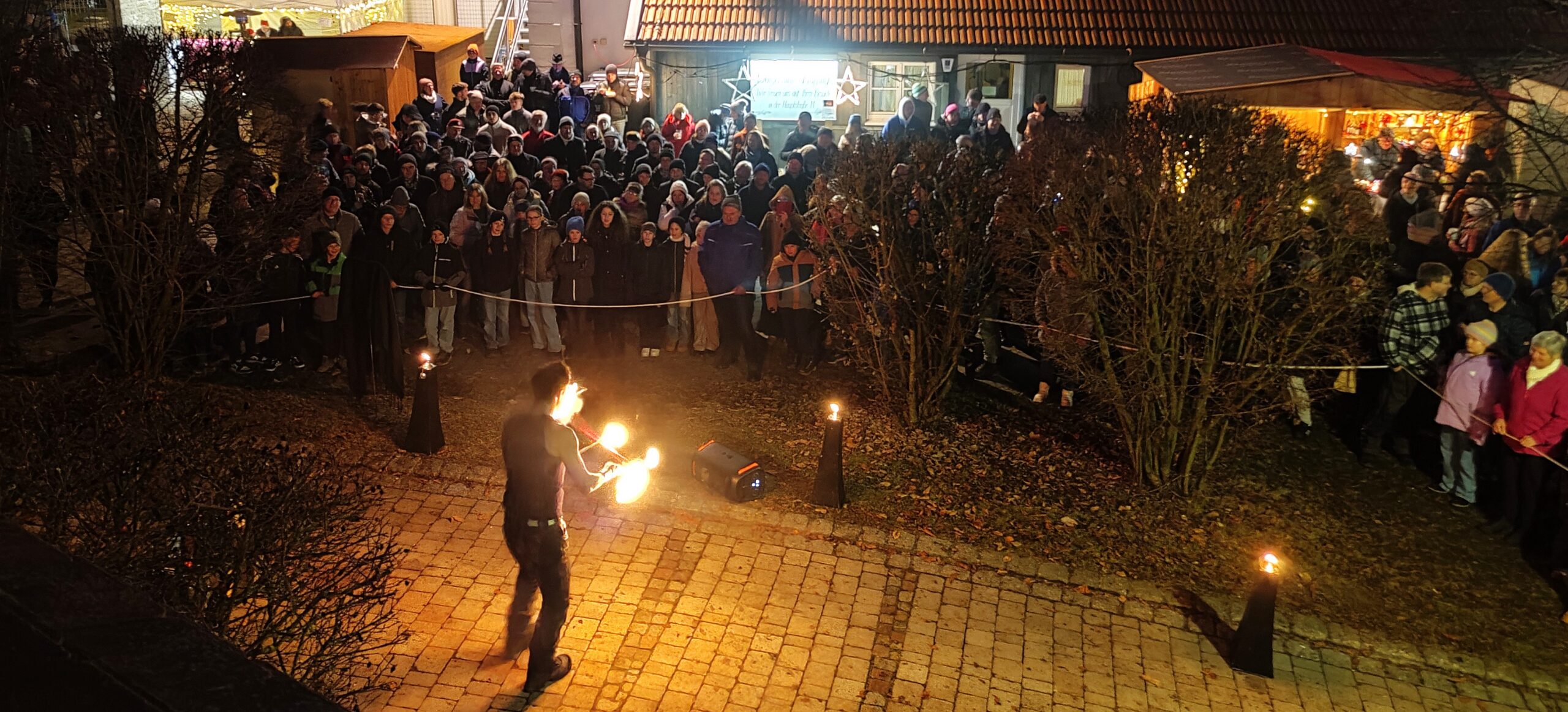 Eine Feuershow begeisterte beim Jubiläums-Markt ebenso wie dei Highlights für die Kids – vor allem der Besuch von Sankt Nikolaus alias Toni Wegmaier jun. (Foto unten).