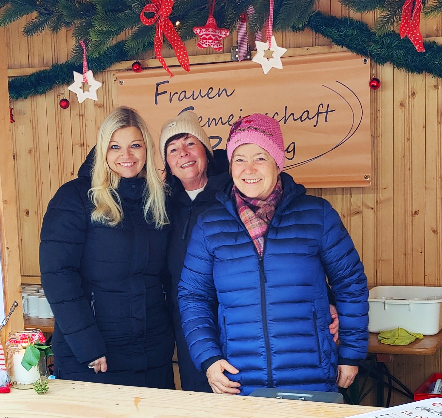 Danke auch den vielen ehrenamtlichen Helfern der Frauen Gemeinschaft Pfaffing: Angefangen beim Aufbau der Hütten, den Deko-, Koch-, Verkaufs- und Spülteams sowie den Helfern beim Aufräumen und beim Abbau.