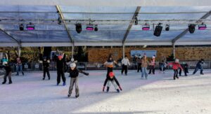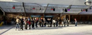 Ein kurzer Fußmarsch von etwa zehn Minuten und schon kann es für die Schüler mit eigenen oder günstig zu leihenden Schlittschuhen losgehen: Nach ein paar Runden verbessert sich die Stabilität auf zwei Kufen sichtlich und Gleitphasen werden deutlich länger. „Gerade Schlittschuhlaufen trägt ungemein zur Verbesserung der Gleichgewichtsfähigkeit bei; peripheres Sehen und schnelles Reagieren beim Ausweichen werden nebenbei geübt“ so die Sportlehrer. Mit Handschuhen und Helm ausgerüstet, sind die wenigen Stürze verletzungsfrei zu meistern. Jeder kann auf seinem Niveau Fortschritte machen, so dass alle auf ihre Kosten kommen. Also heißt es hoffentlich im nächsten Jahr wieder: „Heute geht’s auf die Eisbahn“.