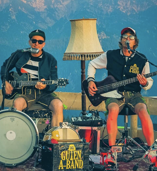 Mit einem abwechslungsreichen Repertoire aus Rock-, Pop- und Schlagersongs begeistert die Band das Publikum und bringt Jung und Alt gleichermaßen zum Mitsingen und Tanzen. Ihr Programm spannte einen Bogen von zeitlosen Klassikern bis hin zu aktuellen Hits und sorgte für ausgelassene Party-Stimmung – das ist die „Guten A-Band“, die morgen in der Laterndlalm am Gries zu hören ist. Wenn’s krachen soll spielt das Duo aus Traunstein sechs Instrumente gleichzeitig und schnallt sich schnell mal ein ganzes Schlagzeug vor die Füße, eine Snare-Drum liegt im Bierkasten. Sie spielen die Geräte und Instrumente sitzend und mit Stromgitarren kombiniert geht’s dann Vollgas ab – morgen, Donnerstag, ab 20 Uhr bei der After-Work-Weihnachtsparty am Gries.