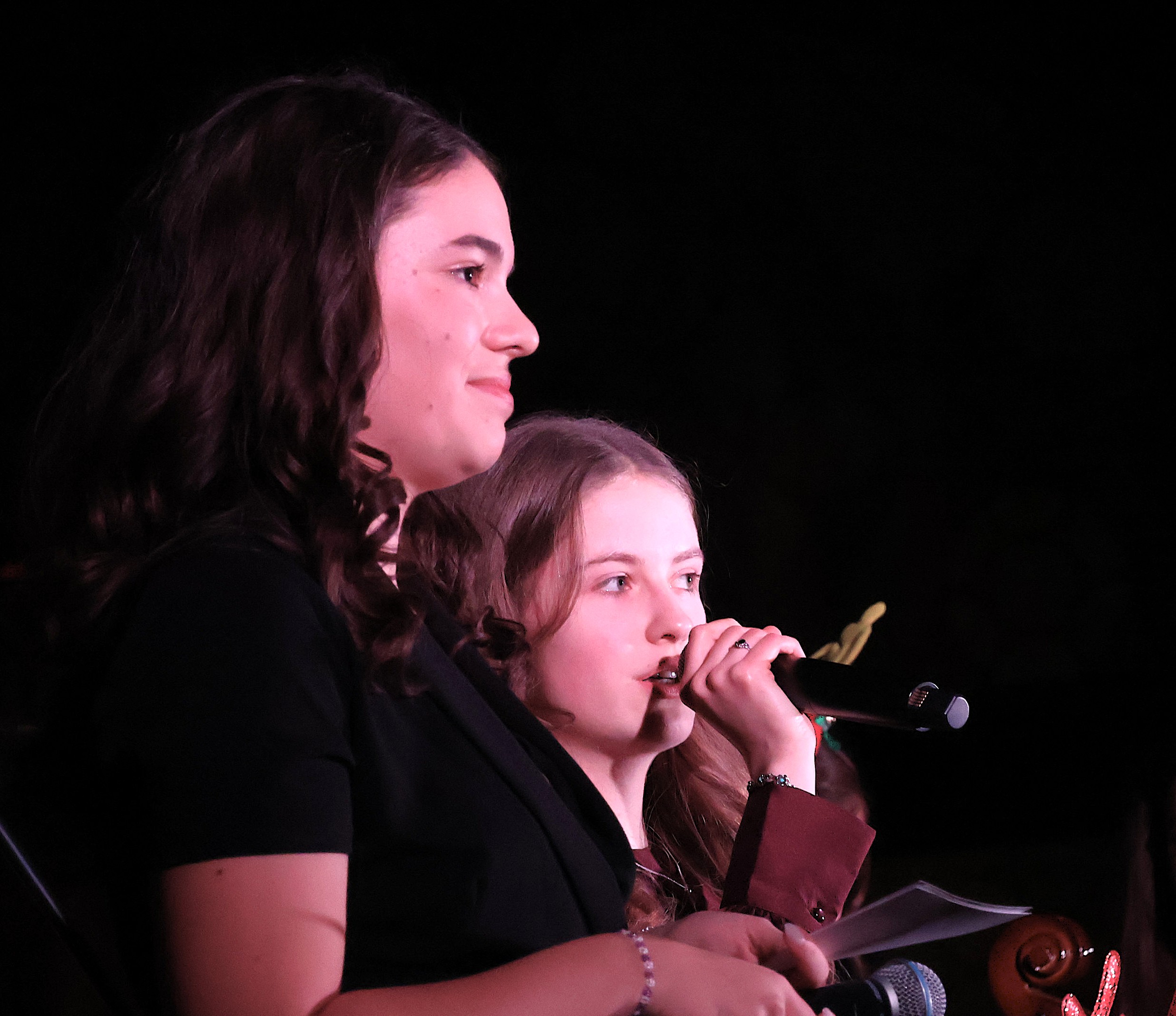 Foto unten: Auch sie machten es gut auf der Bühne – die beiden Moderatorinnen des Abends (von links) Pauline Gaßner und Theresa Hubmann führten das zahlreich erschienene Publikum charmant und kurzweilig durchs Programm, das ein wahrer Lichterglanz wurde.